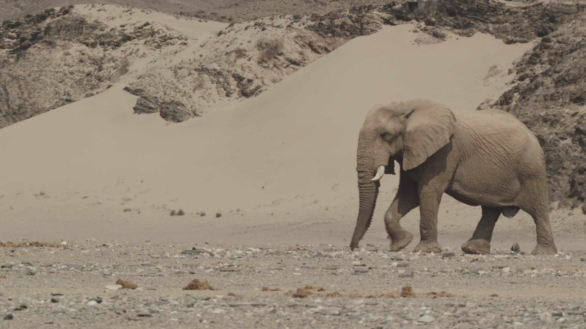 WS Elephant (Loxodonta africana) walking in desert / Namibia