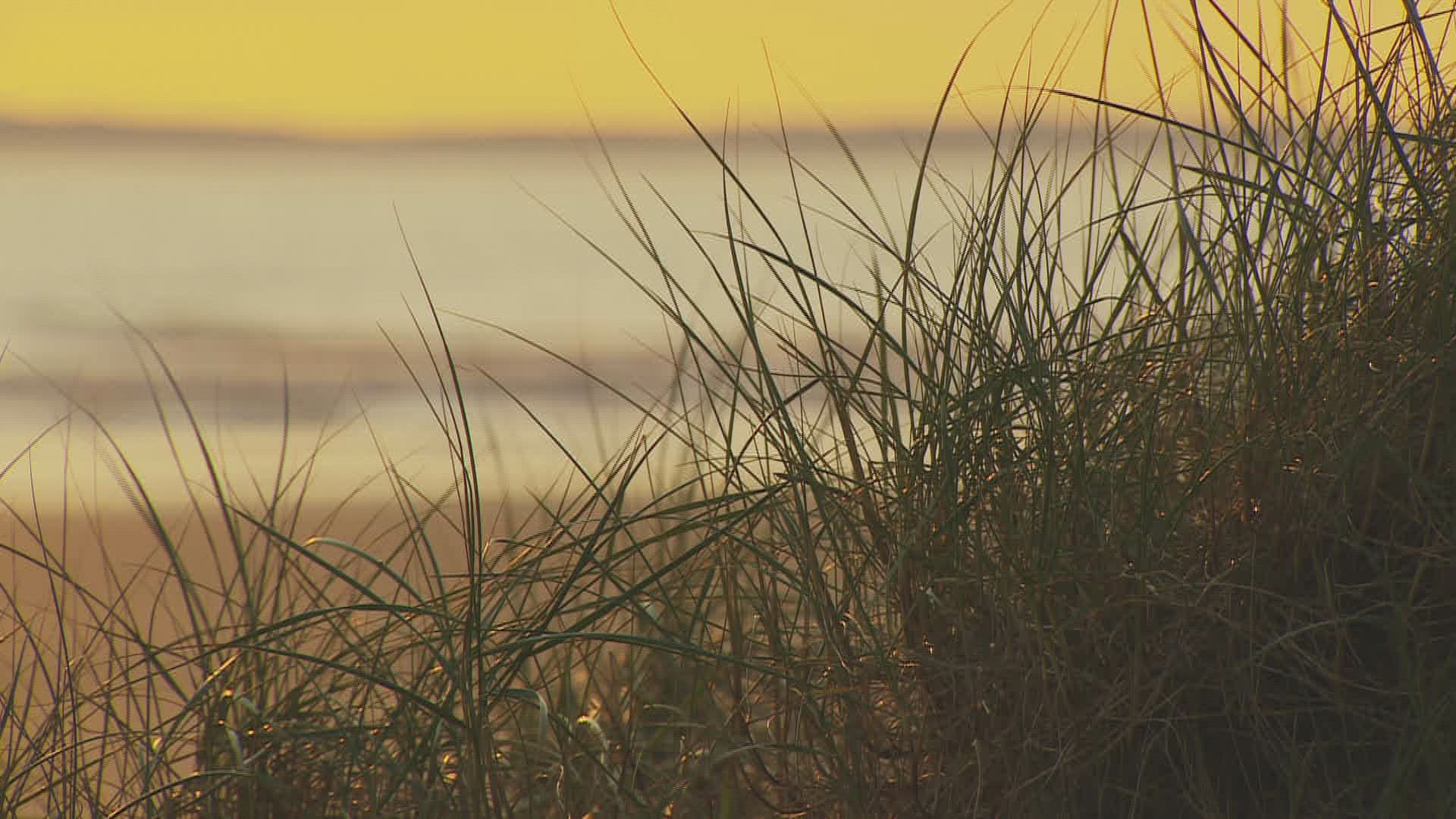 WS PAN Grass on beach / Snettisham; Kings Lynn; Norfolk; England;UK