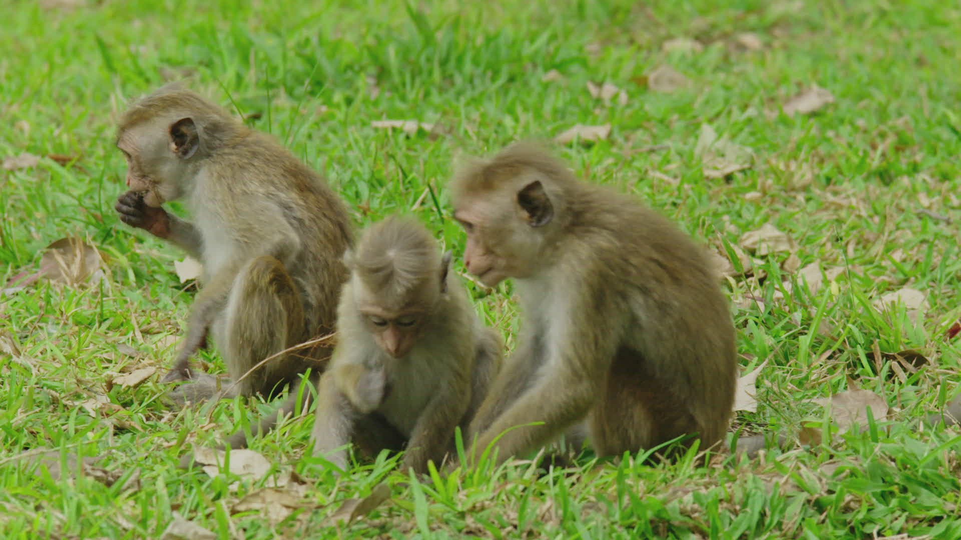 WS Small toque macaques (Macaca sinica) eating / Polonnaruwa; Central Province; Sri Lanka