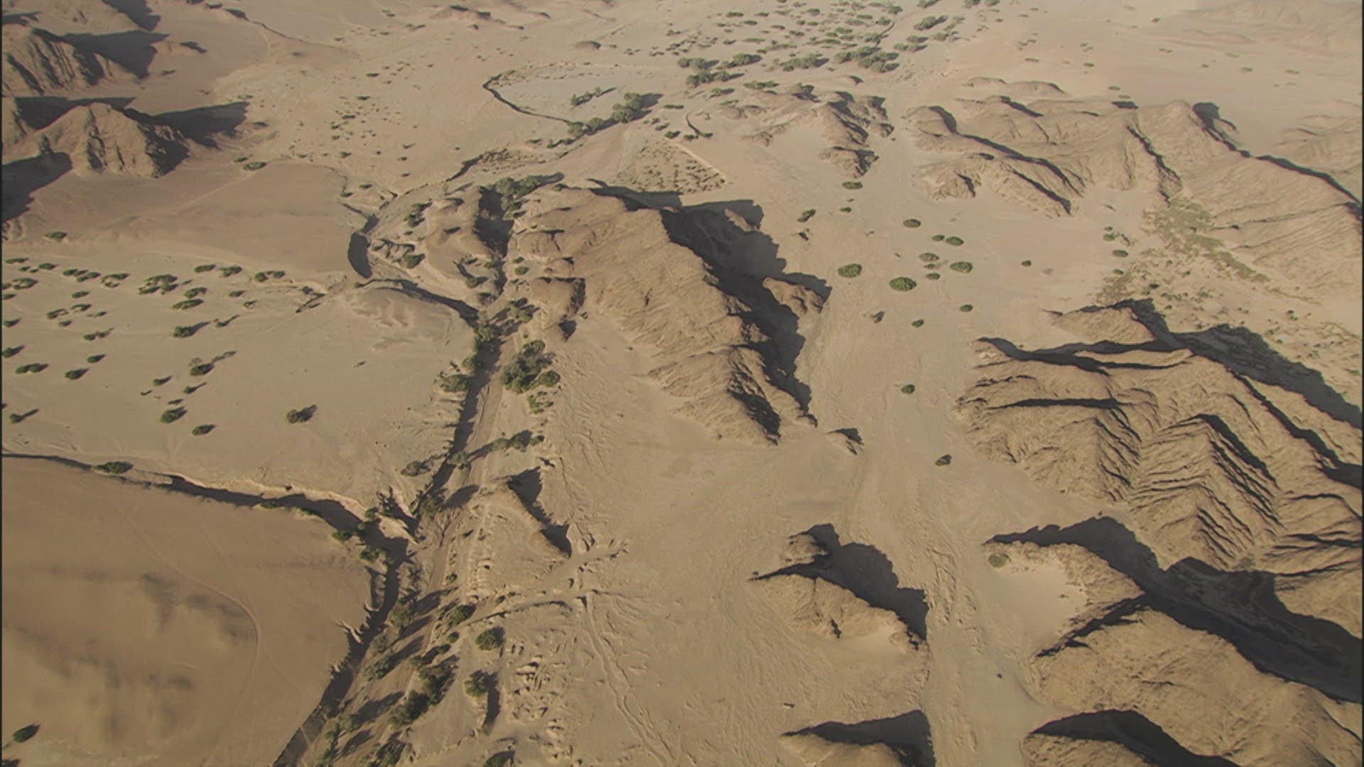 WS AERIAL Mountains and flood plains in desert landscape / Namibia; Hoanib
