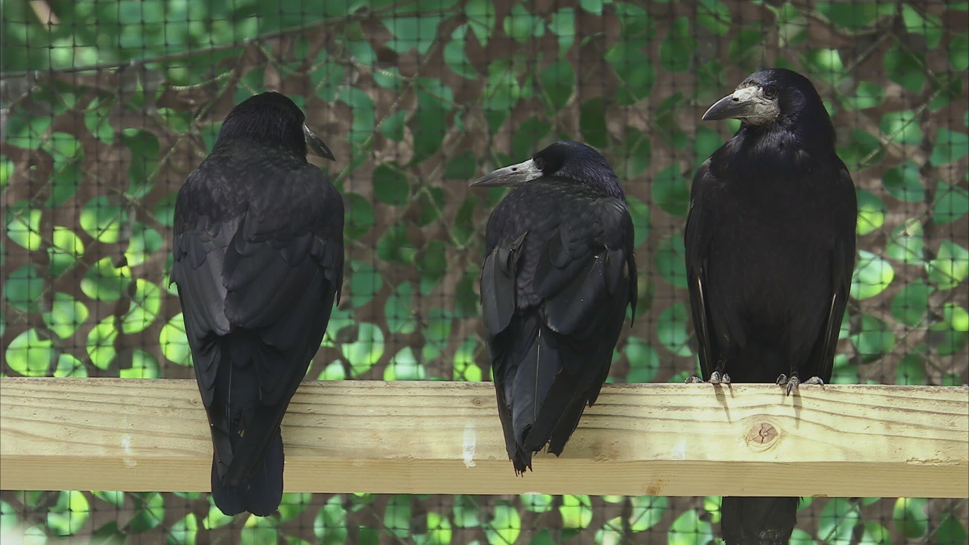 WS Three rooks (Corvus frugilegus) perching in cage / Strasbourg; France