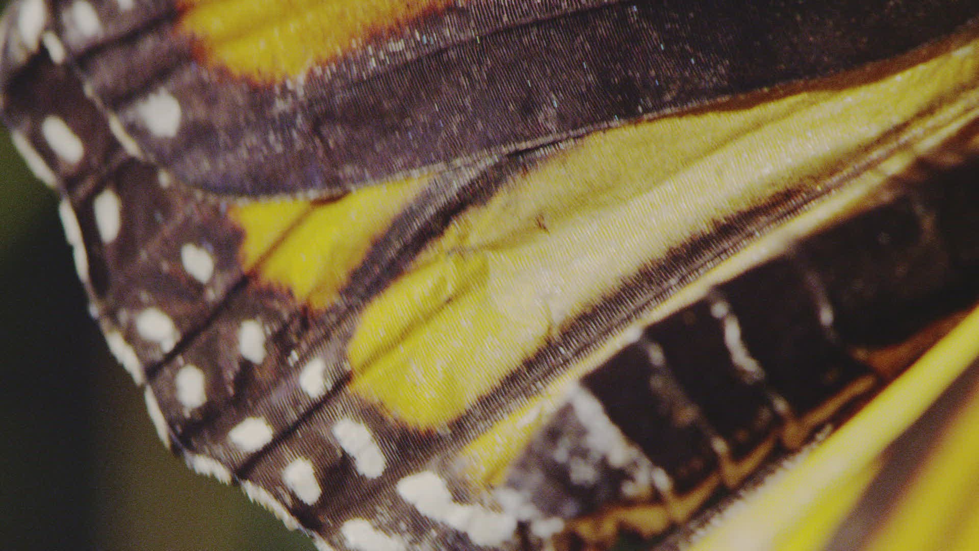 CU SELECTIVE FOCUS Monarch butterfly (Danaus plexippus) wing / Failand; Somerset; UK