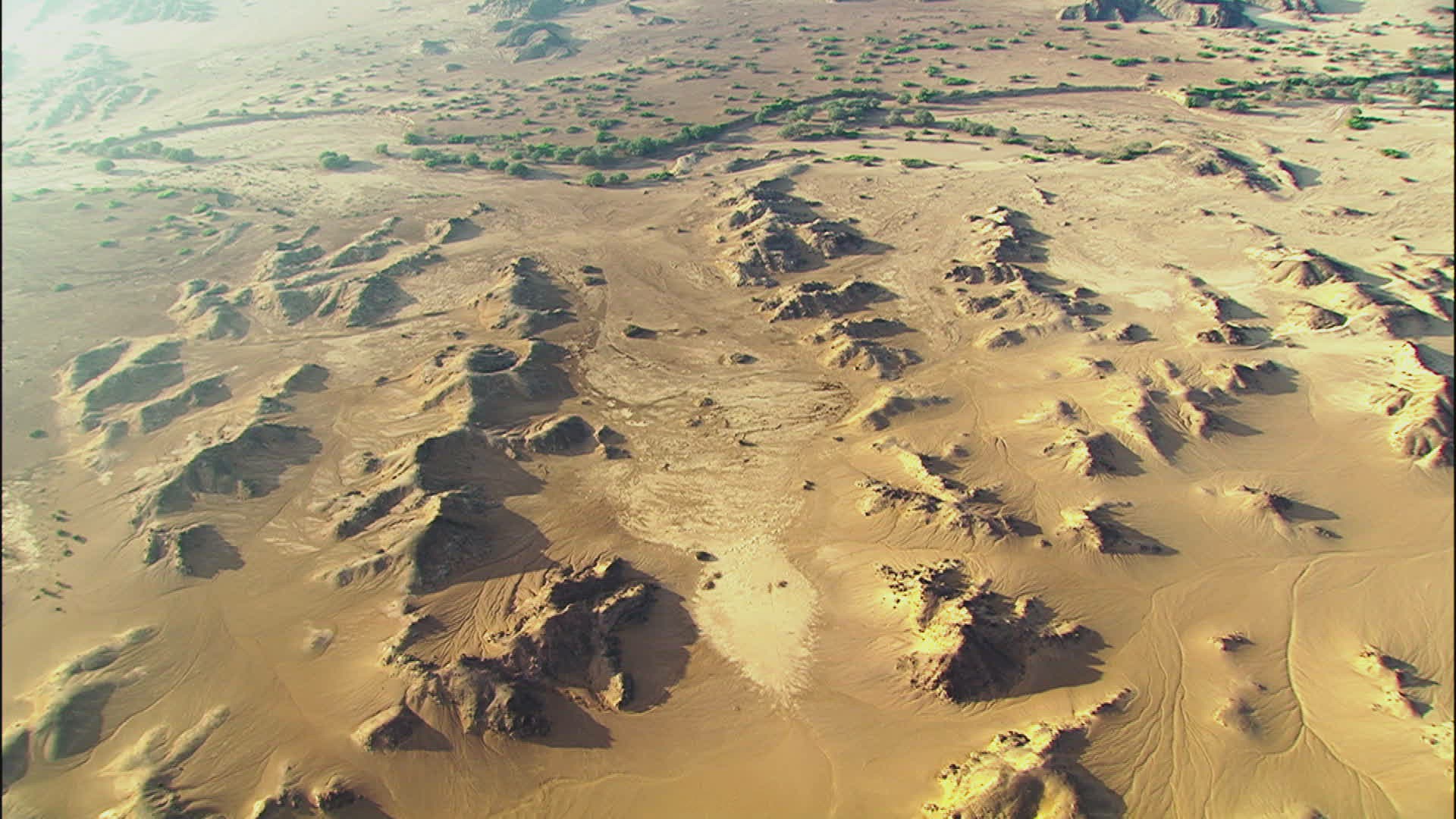 WS AERIAL Landscape of sandy desert at sunlight / Hoanib; Namibia