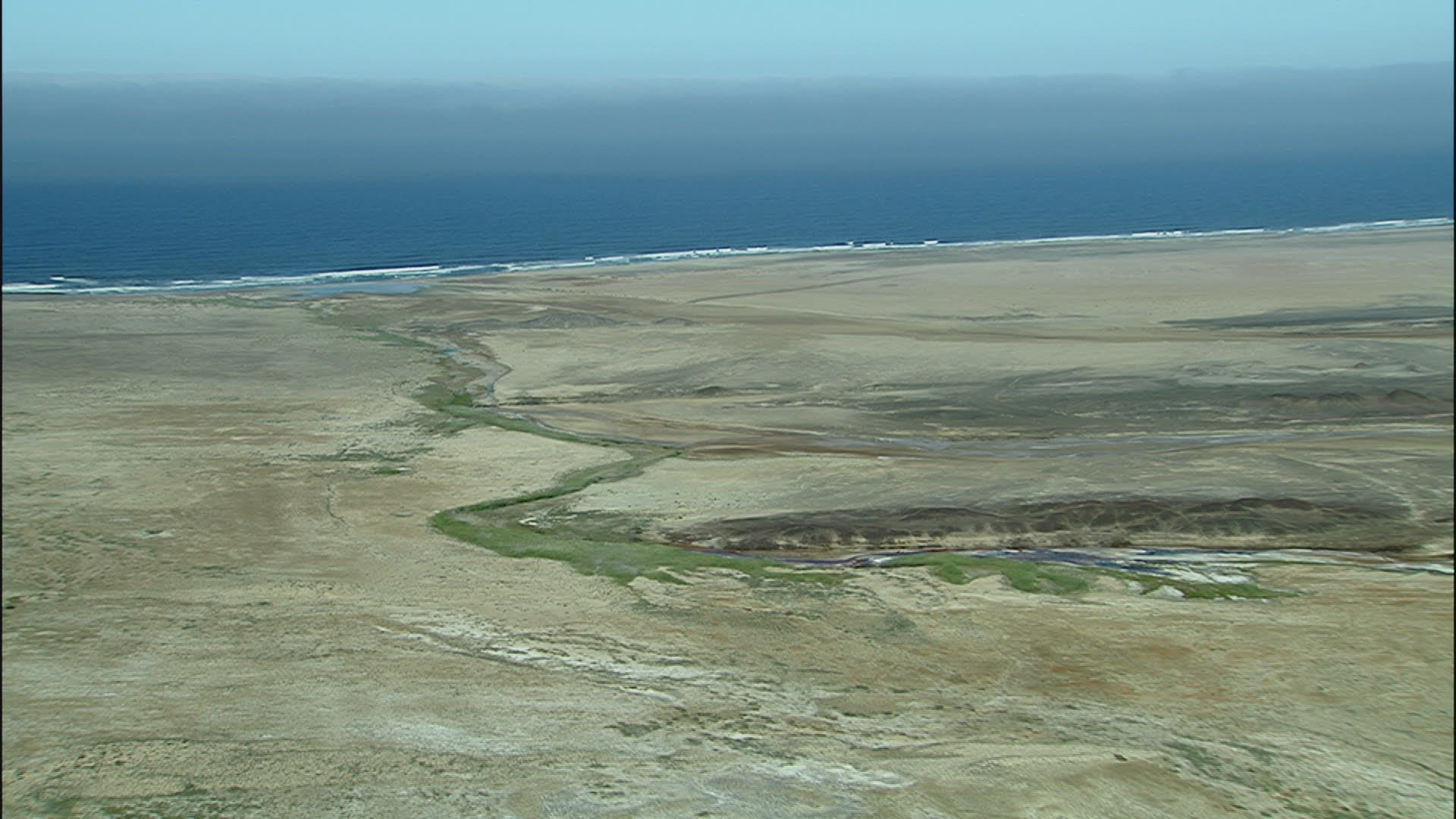WS AERIAL SLO MO Desert by sea at sunlight / Hoanib; Namibia