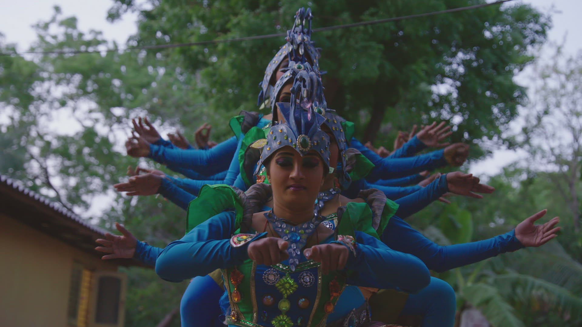 CU Dancers dancing in row during preparation for performance during festival in honor of Kataragama deviyo / Kataragama; Uva Province; Sri Lanka