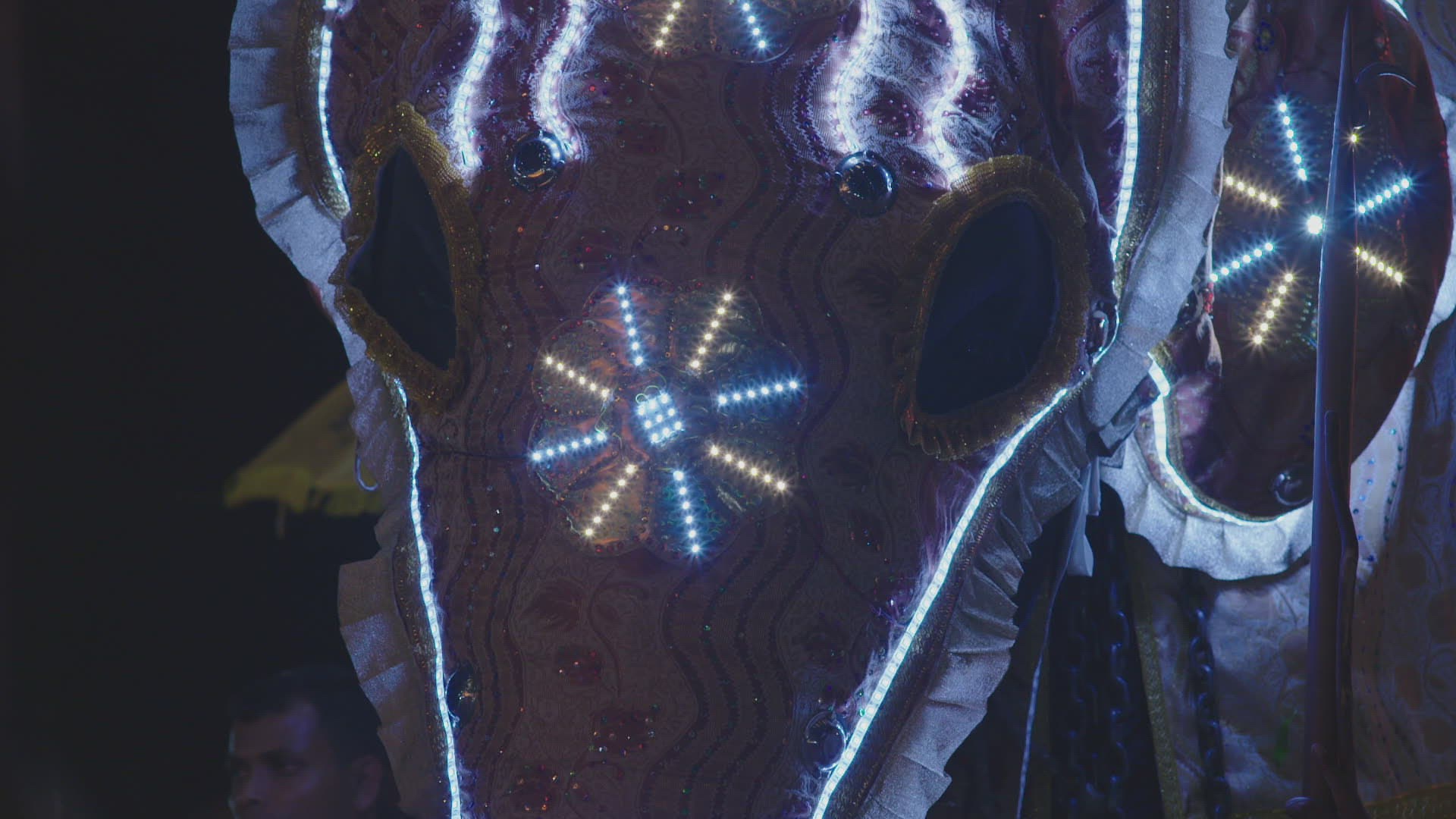 CU TU Sri Lanka elephant; (Elephas maximus maximus) walking during festival in honor of Kataragama deviyo / Kataragama; Uva Province; Sri Lanka