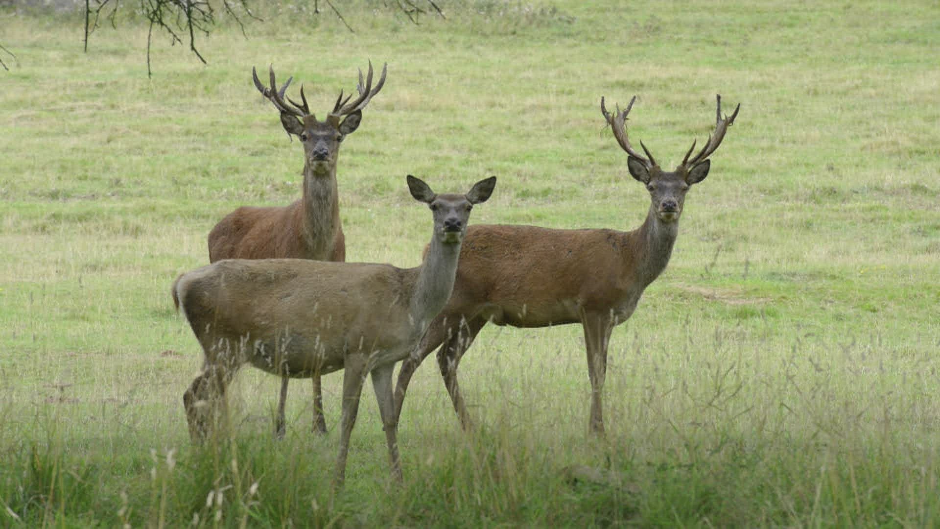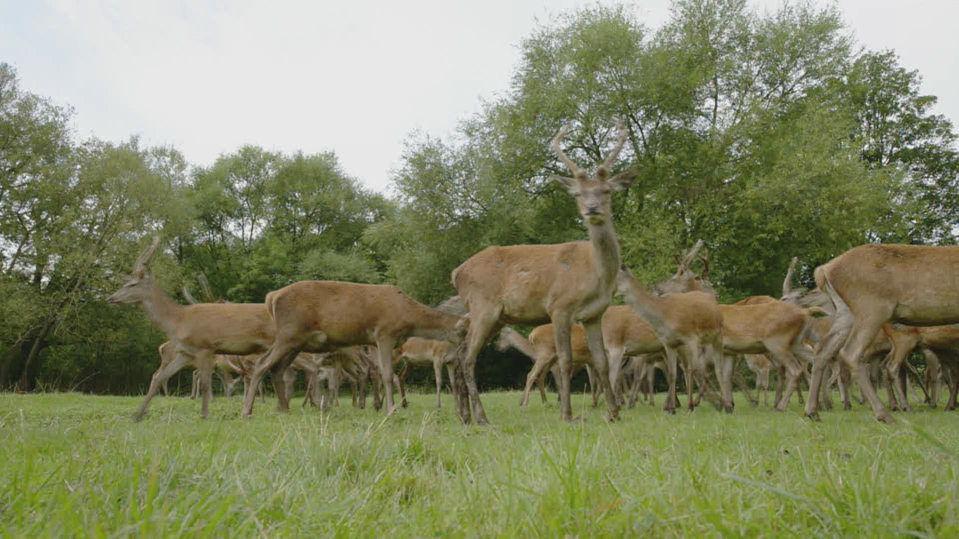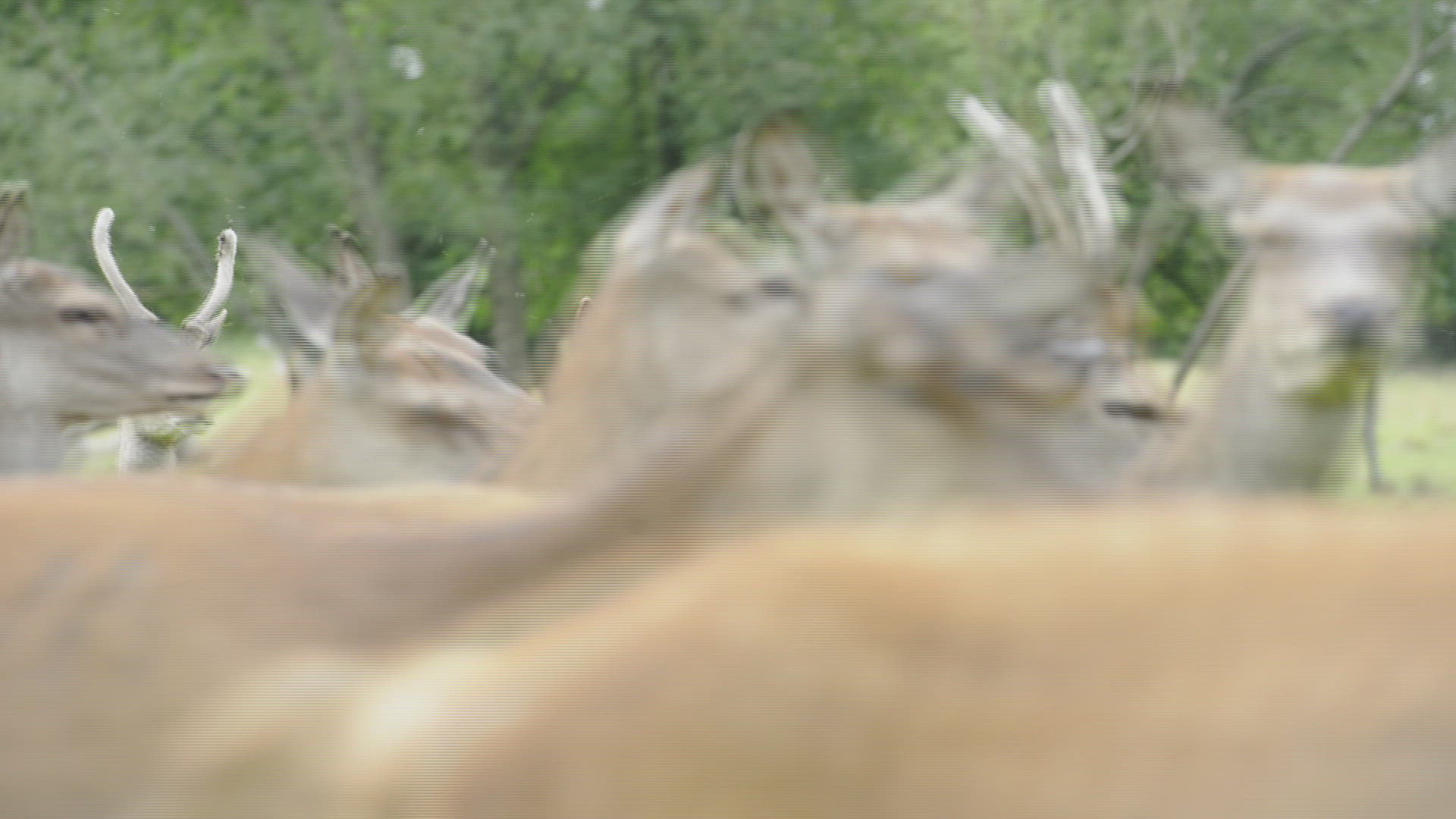 CU TU Flies (Diptera) flying around red deer (Cervus elaphus) / Long Ashton; Somerset; England; UK