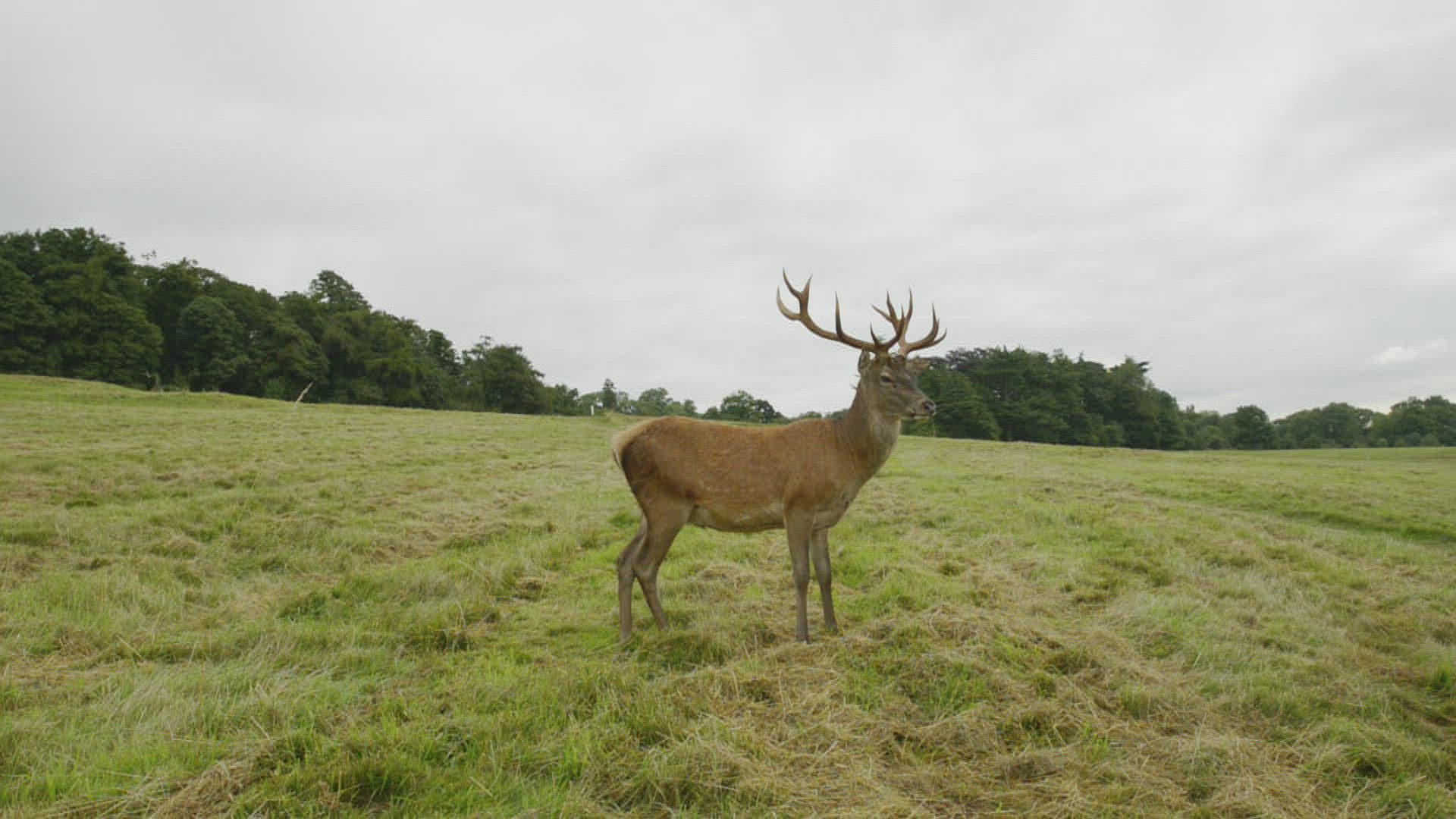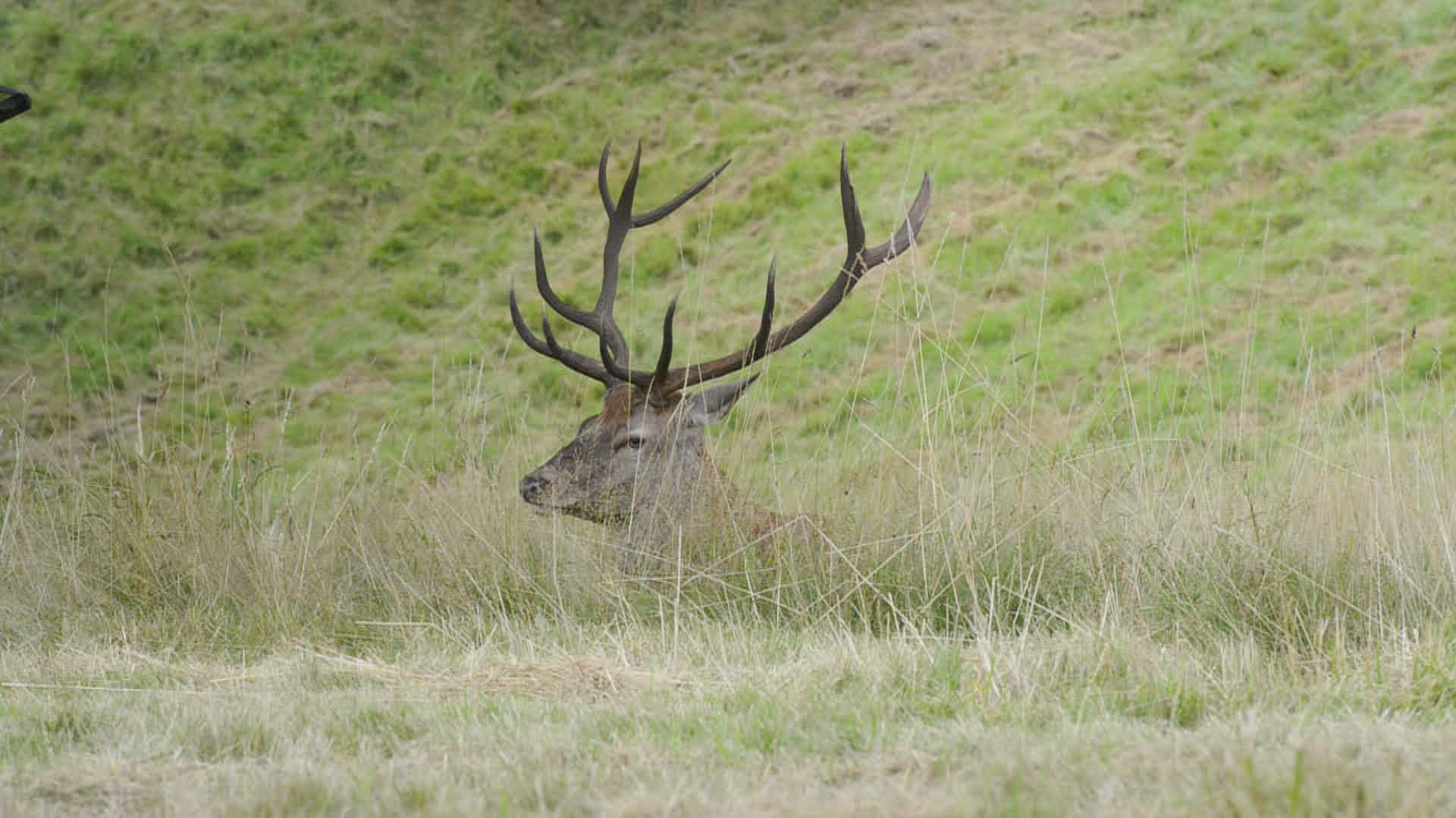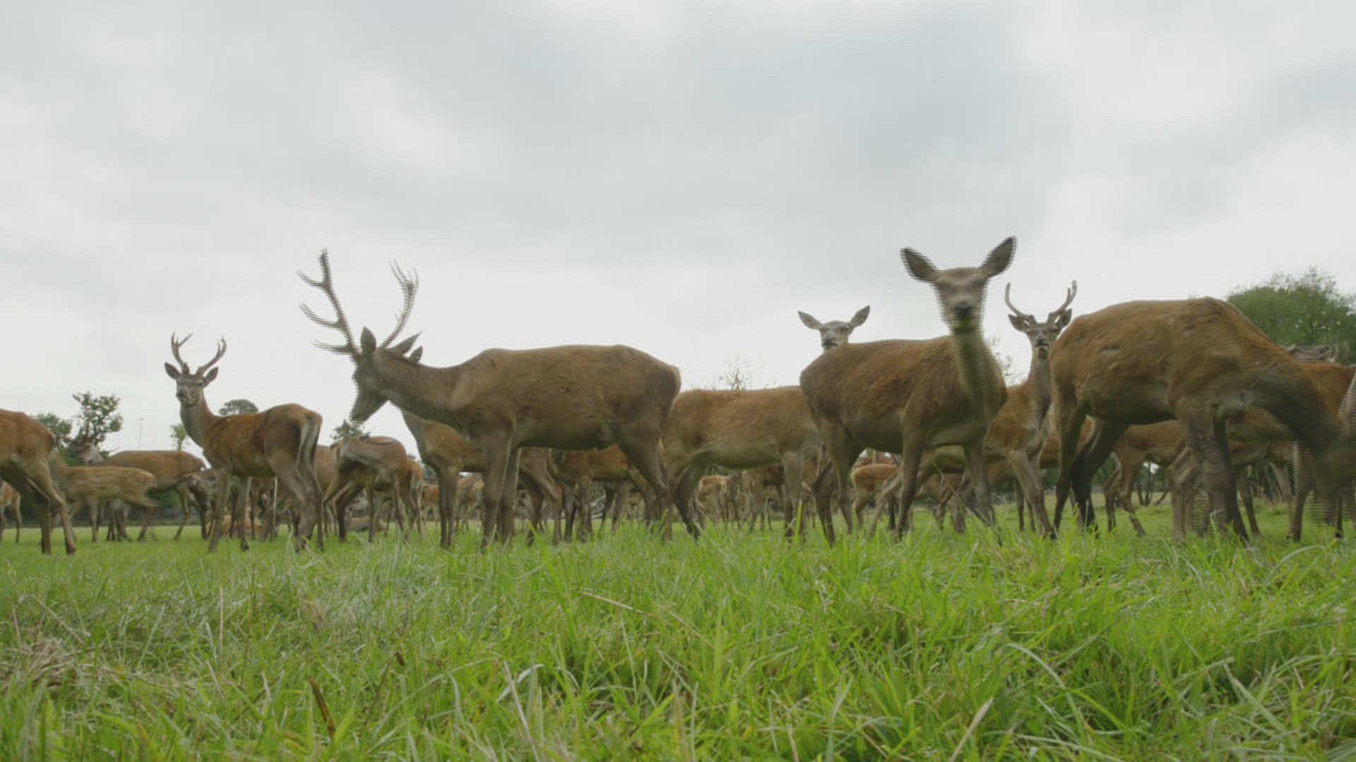 CU TU Flies (Diptera) flying around red deer (Cervus elaphus) / Long Ashton; Somerset; England; UK