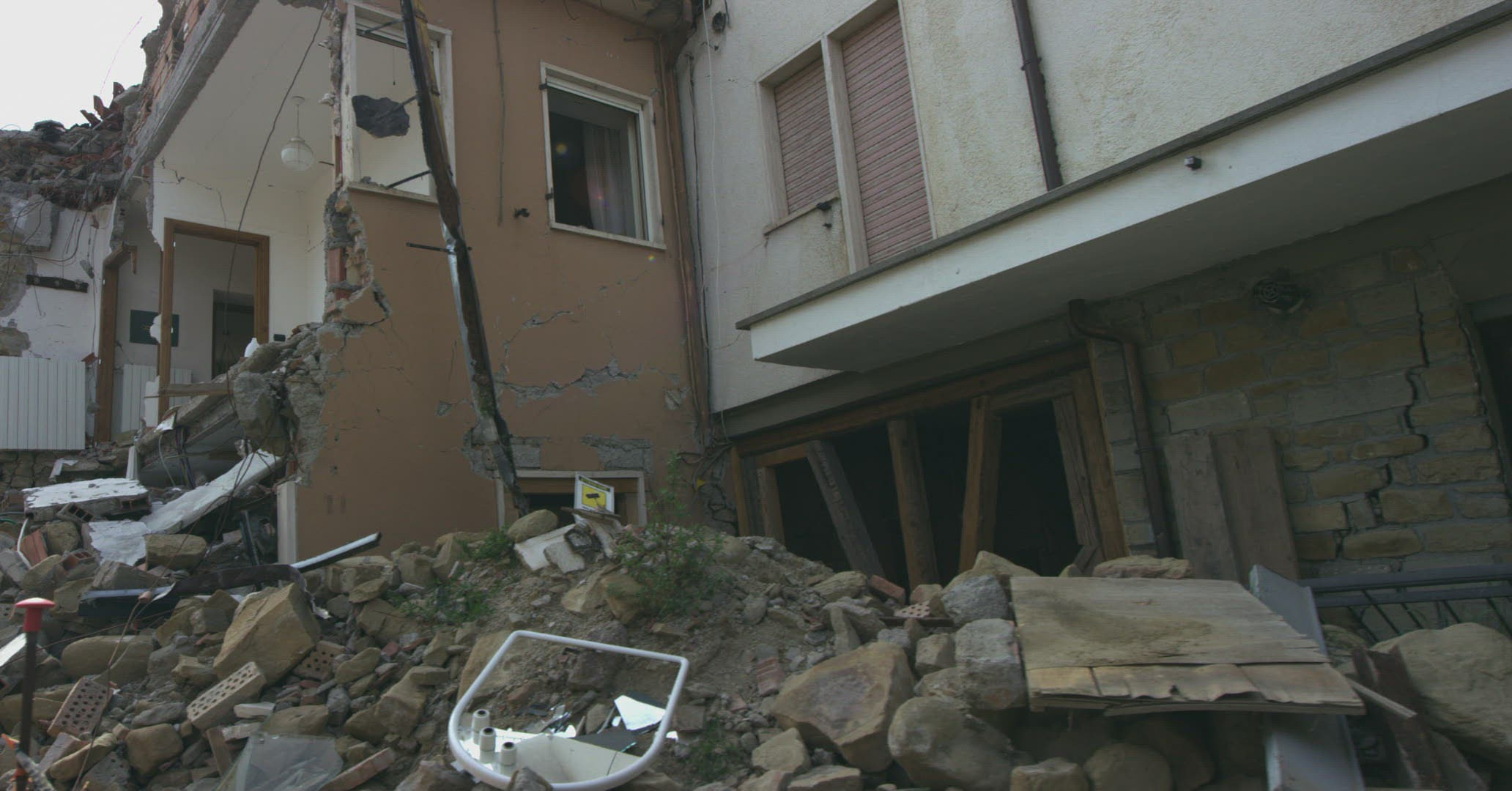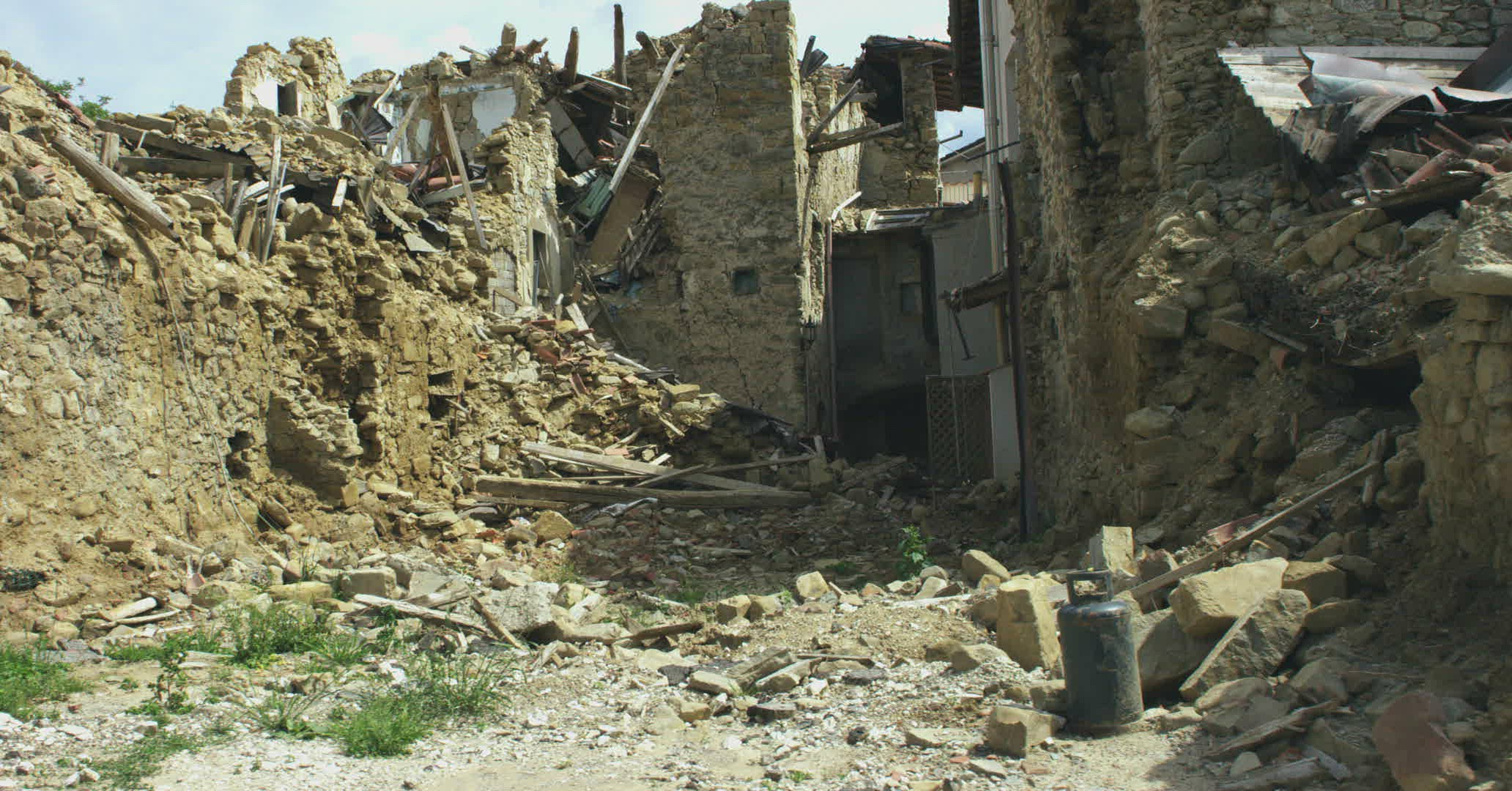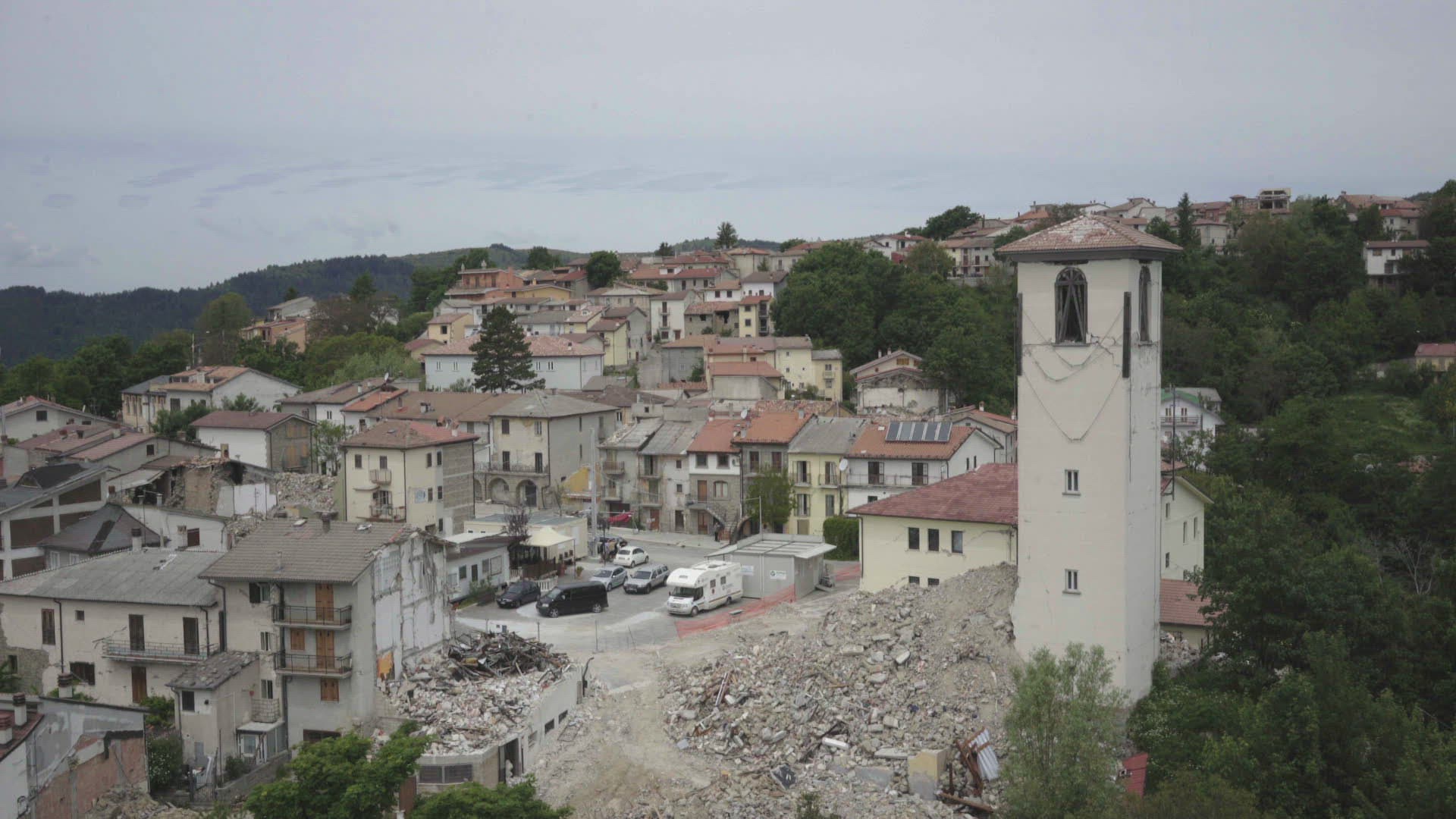 WS AERIAL Mountain landscape with bridge over bay / Campotosto; Province of L'Aquila; Italy
