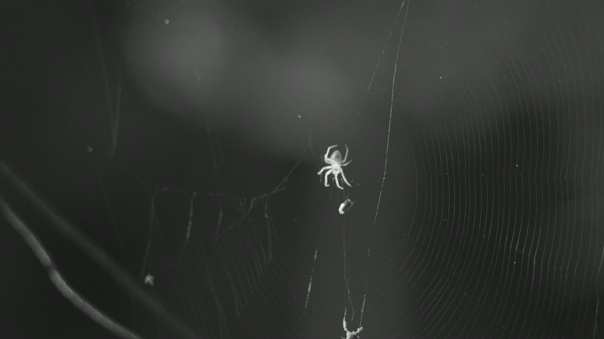 CU Orb weaving spiders (Araneidae spp.) hunting on Fireflies (Lampyridae) on spider web in Allegheny National Forest / Tionesta; Pennsylvania; USA
