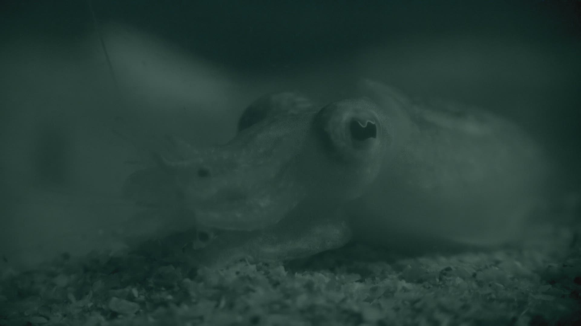 CU Common cuttlefish (Sepia officinalis) and common prawn (Palaemon serratus) underwater / Tatihou; Normandy; France