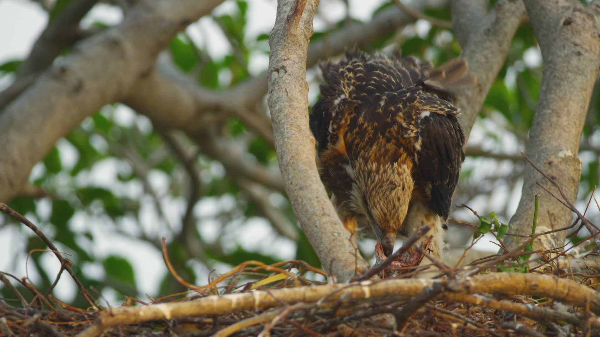 MS Common buzzard (Buteo buteo) with prey in nest / Southern Province; Sri Lanka