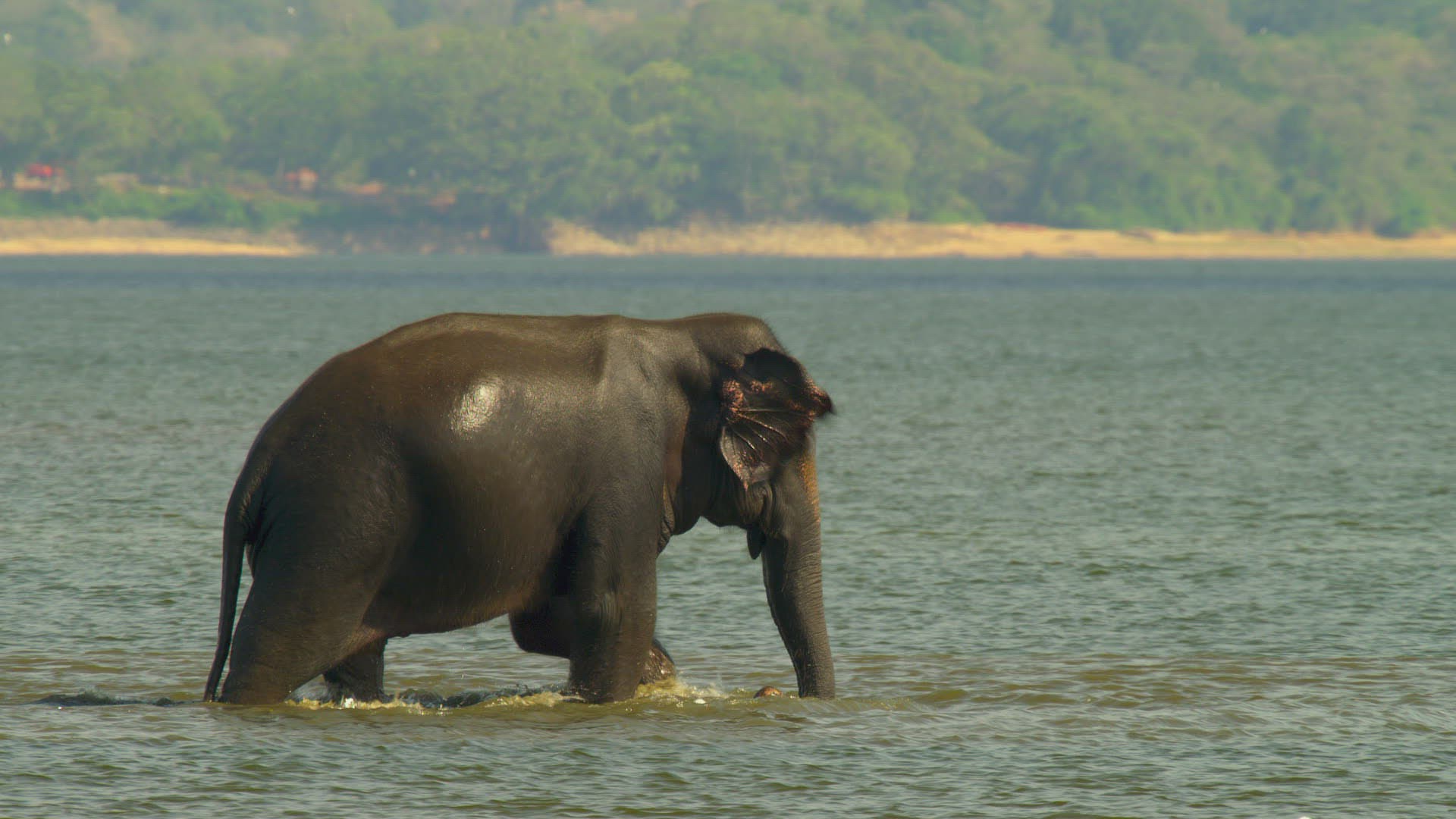 MS PAN Asiatic elephant (Elephas Maximus Maximus) wading / Yala National Park; Southern Province; Sri Lanka