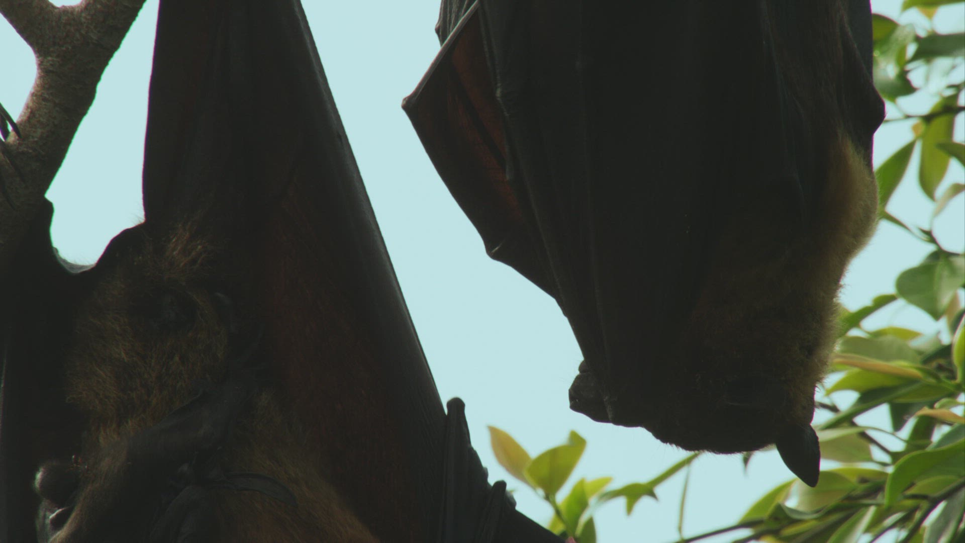 CU Indian flying foxes (Pteropus giganteus) hanging upside down / Sri Lanka