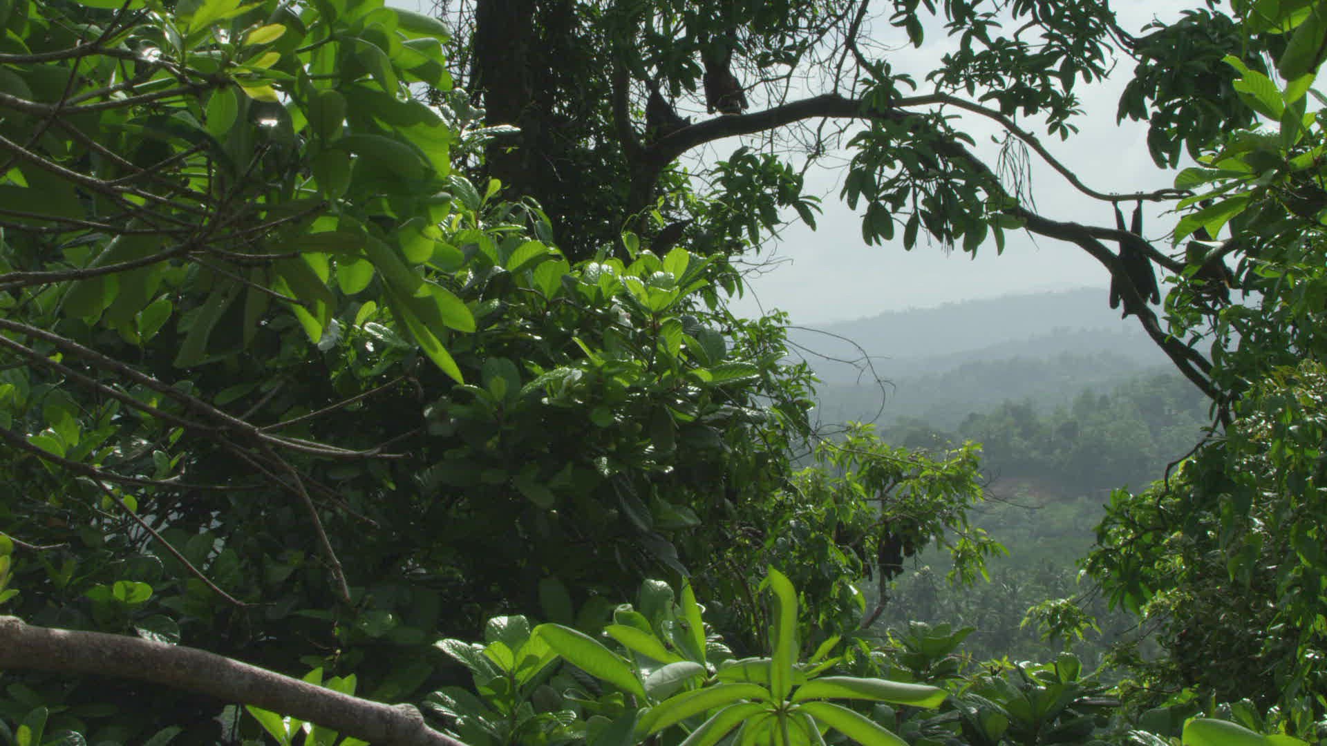 SLO MO MS Indian flying foxes (Pteropus giganteus) hanging from trees and flying / Sri Lanka