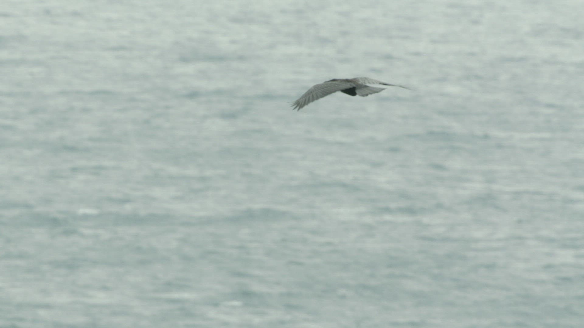 SLO MO WS TS Common raven (Corvus corax) gliding above sea / Cornwall; United Kingdom