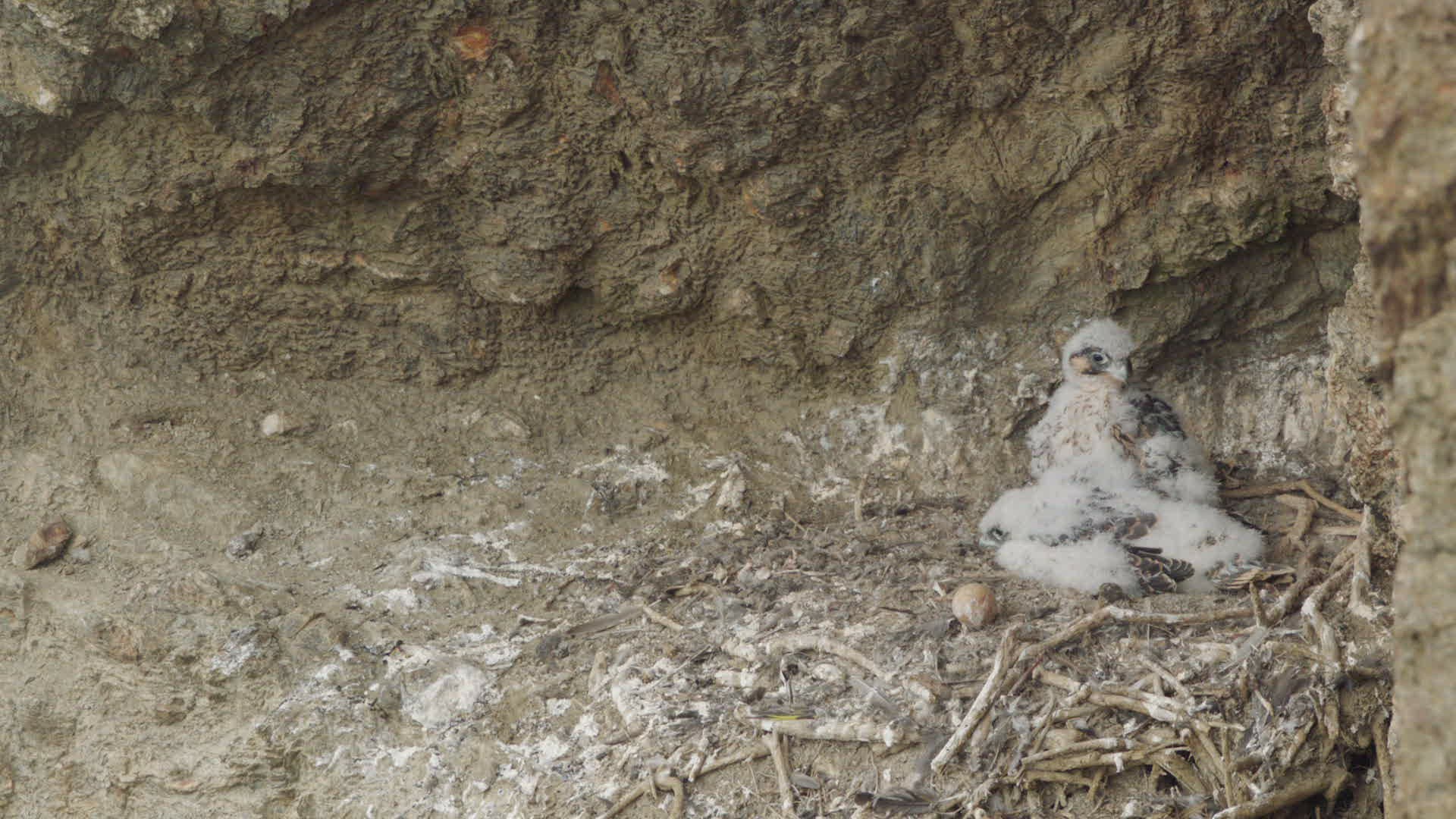 WS Young Peregrine Falcons (Falco peregrinus) resting in nest / Cornwall; United Kingdom
