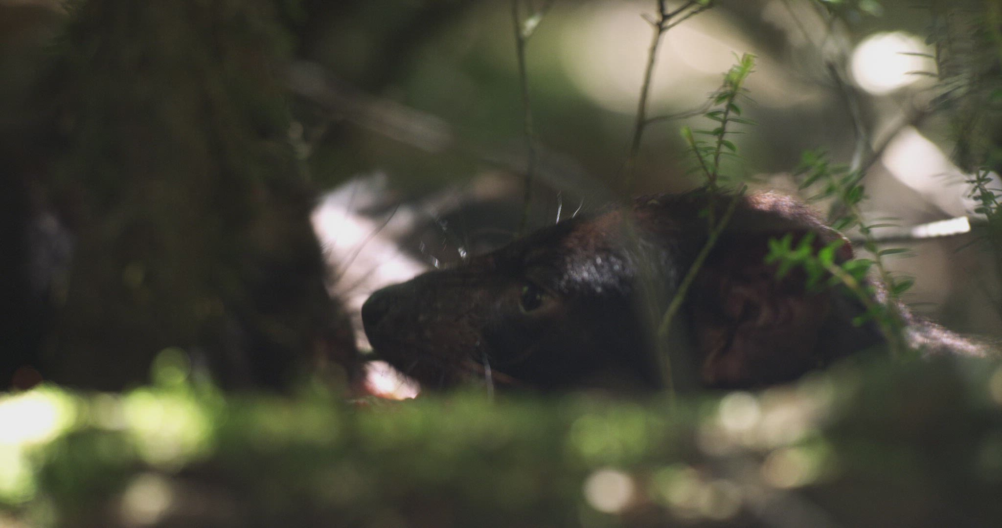 MS SELECTIVE FOCUS Tasmanian Devils (Sarcophilus harrisii) feeding on carcass / Tasmania