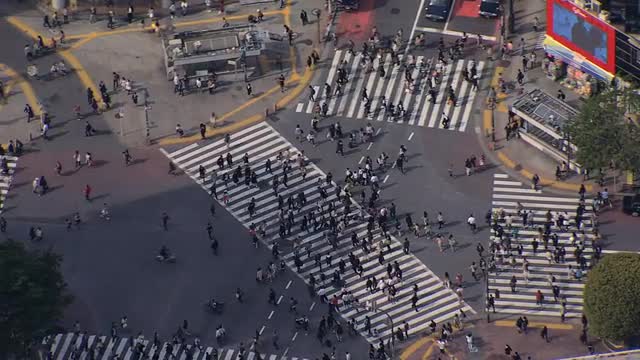 Aerial Shibuya street crossing commuter intersection Tokyo Asia