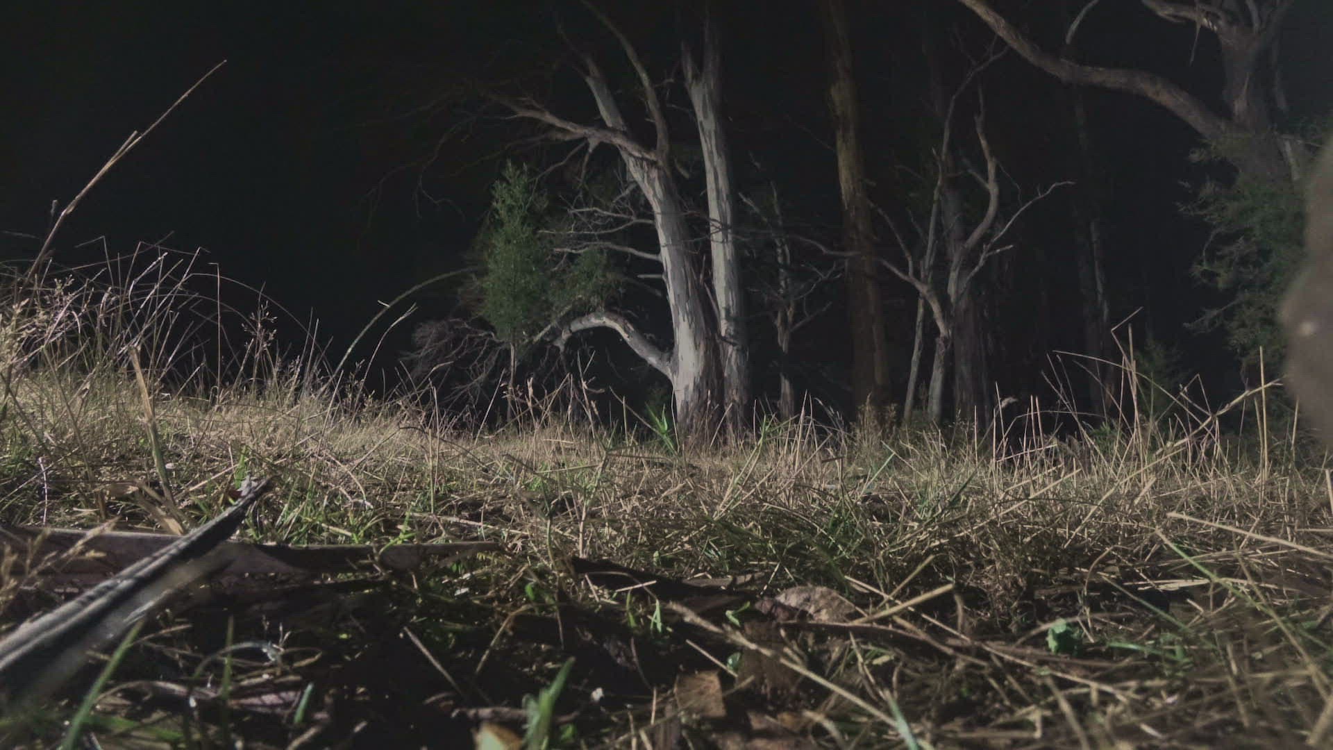 WS LA Eastern Quoll (Dasyurus viverrinus) running on grass at night / Tasmania