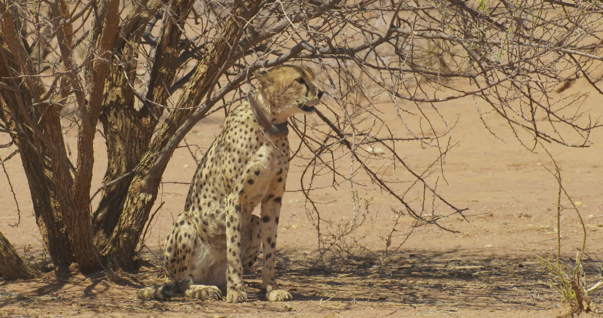 WS Cheetah (Acinonyx jubatus) sitting under tree in Erindi Game Reserve / Namibia