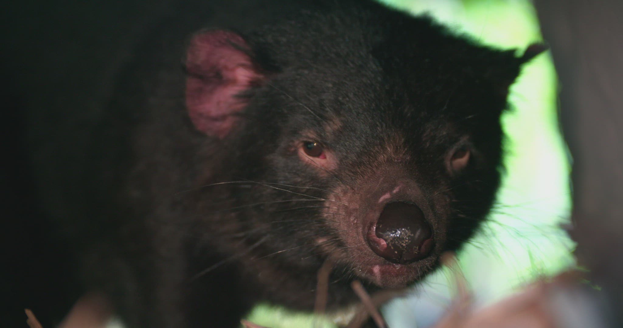 CU SELECTIVE FOCUS Tasmanian devil (Sarcophilus harrisii) looking at camera / Tasmania