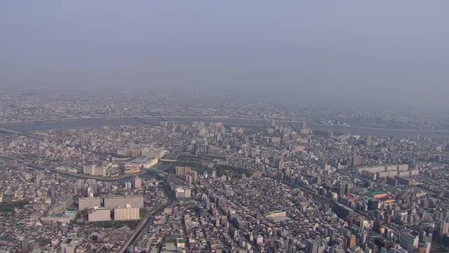 Aerial Metropolis view Tokyo Sumida River skyline suburban Japan