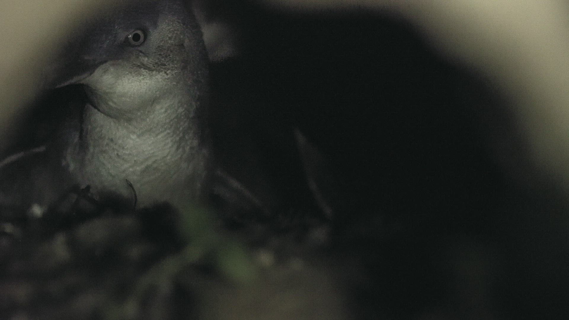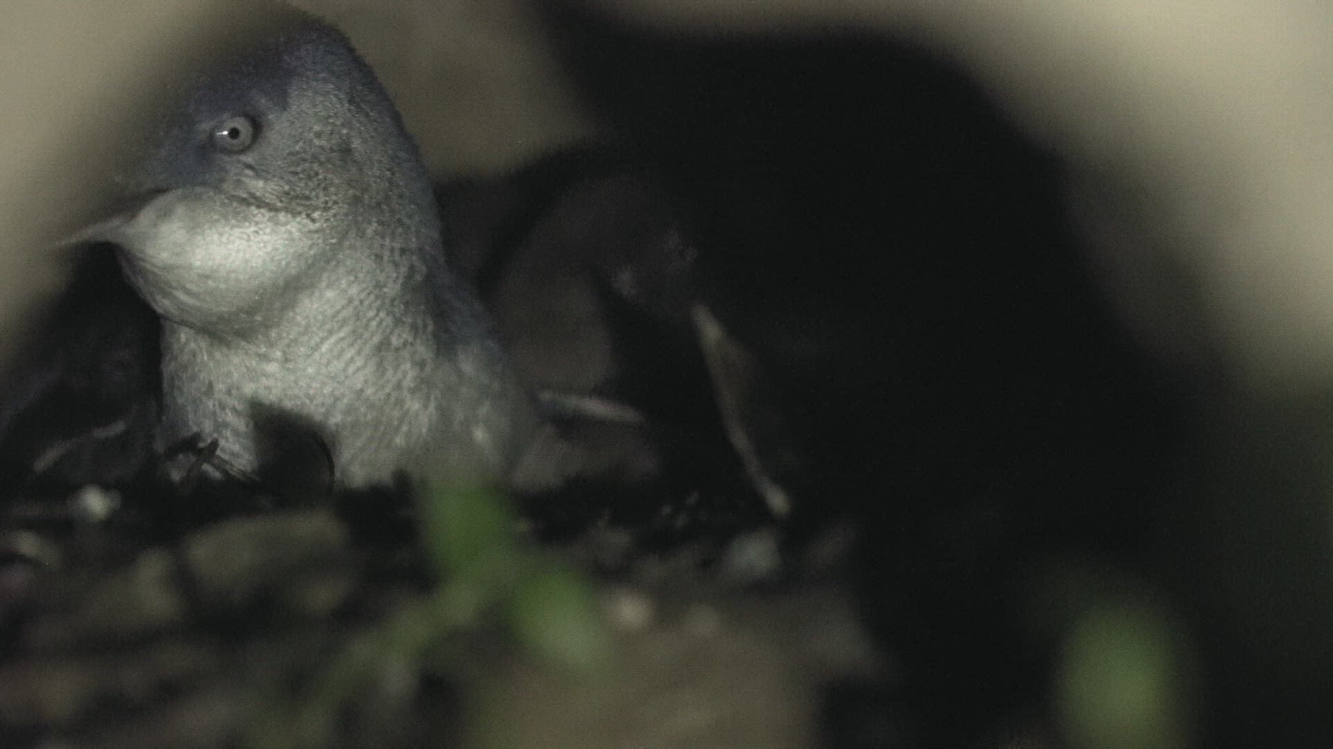 MS SELECTIVE FOCUS Two young Little Penguins (Eudyptula minor) in nest / Tasmania