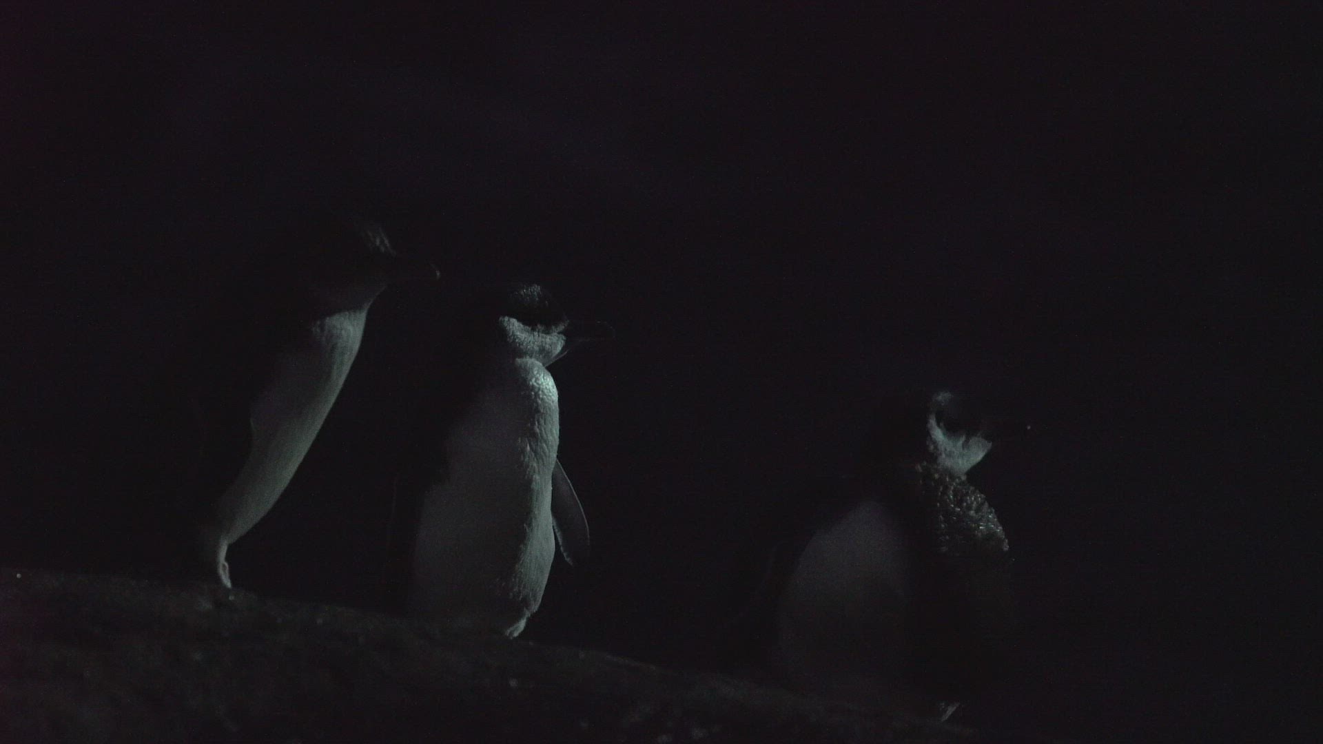 MS Three Little Penguins (Eudyptula minor) on beach at night / Tasmania