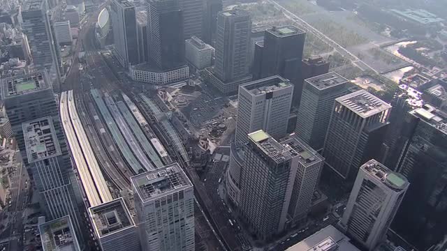 Aerial zoom Tokyo Rail Station Marunouchi Shinkansen Japan