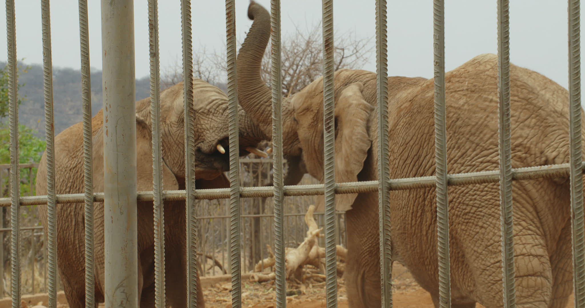 MS PAN Confrontation of Elephants (Loxodonta africana) in Okutala Etosha Lodge / Kunene; Namibia