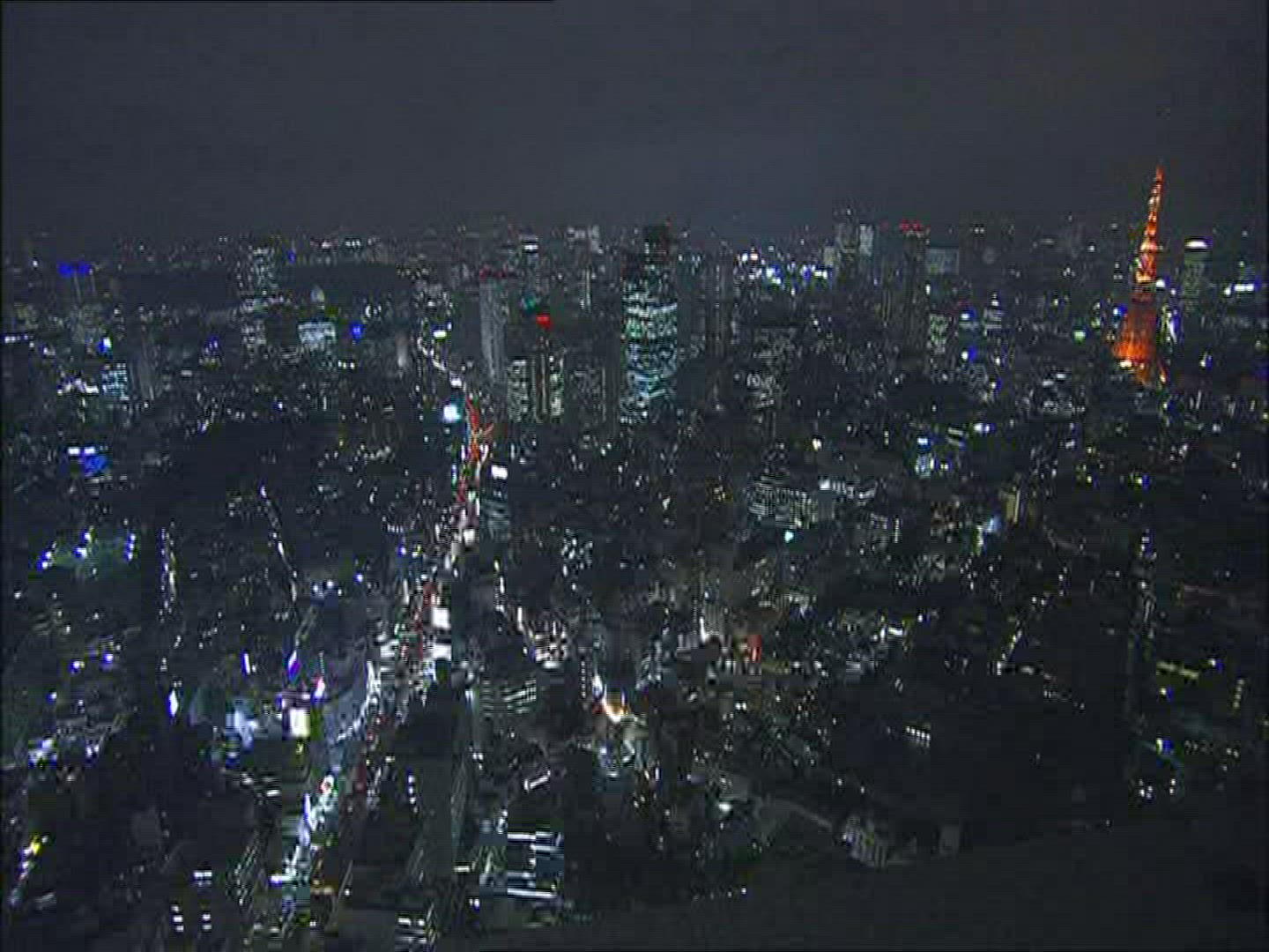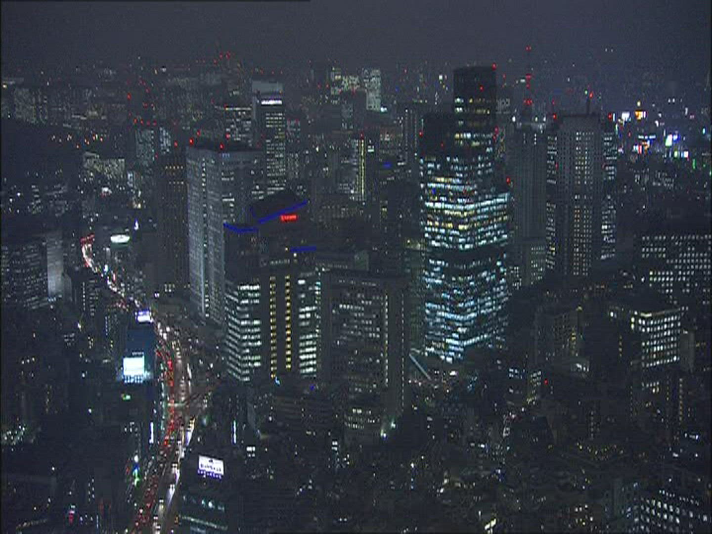 > Aerial dusk Buildings Tokyo city skyscrapers Minato Business district Japan