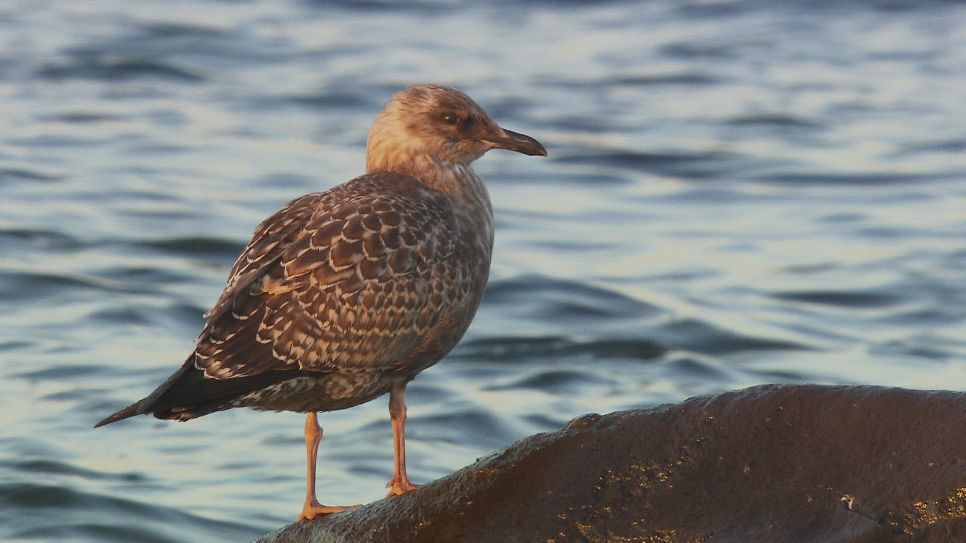 MS SELECTIVE FOCUS Gull (Larus schistisagus) on rock against sea / Russia