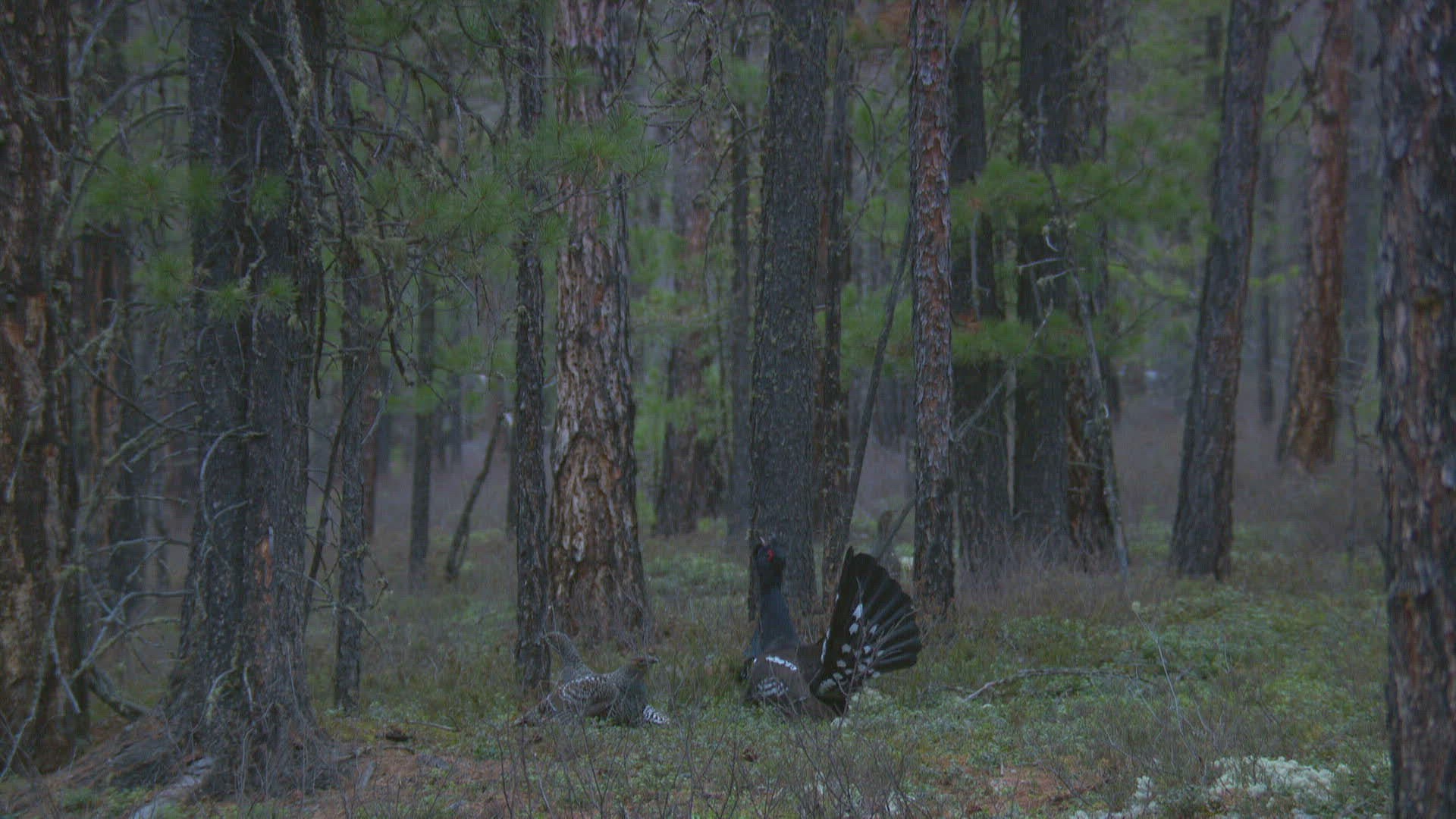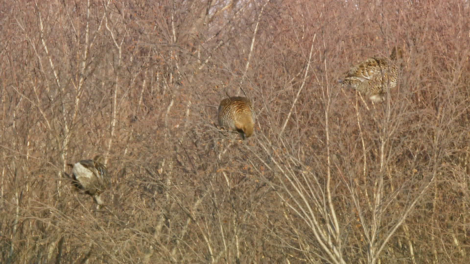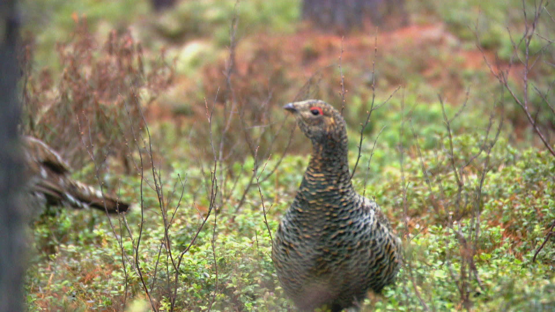 MS SELECTIVE FOCUS Black grouse (Lyrurus tetrix) perching in bush / Mongolia