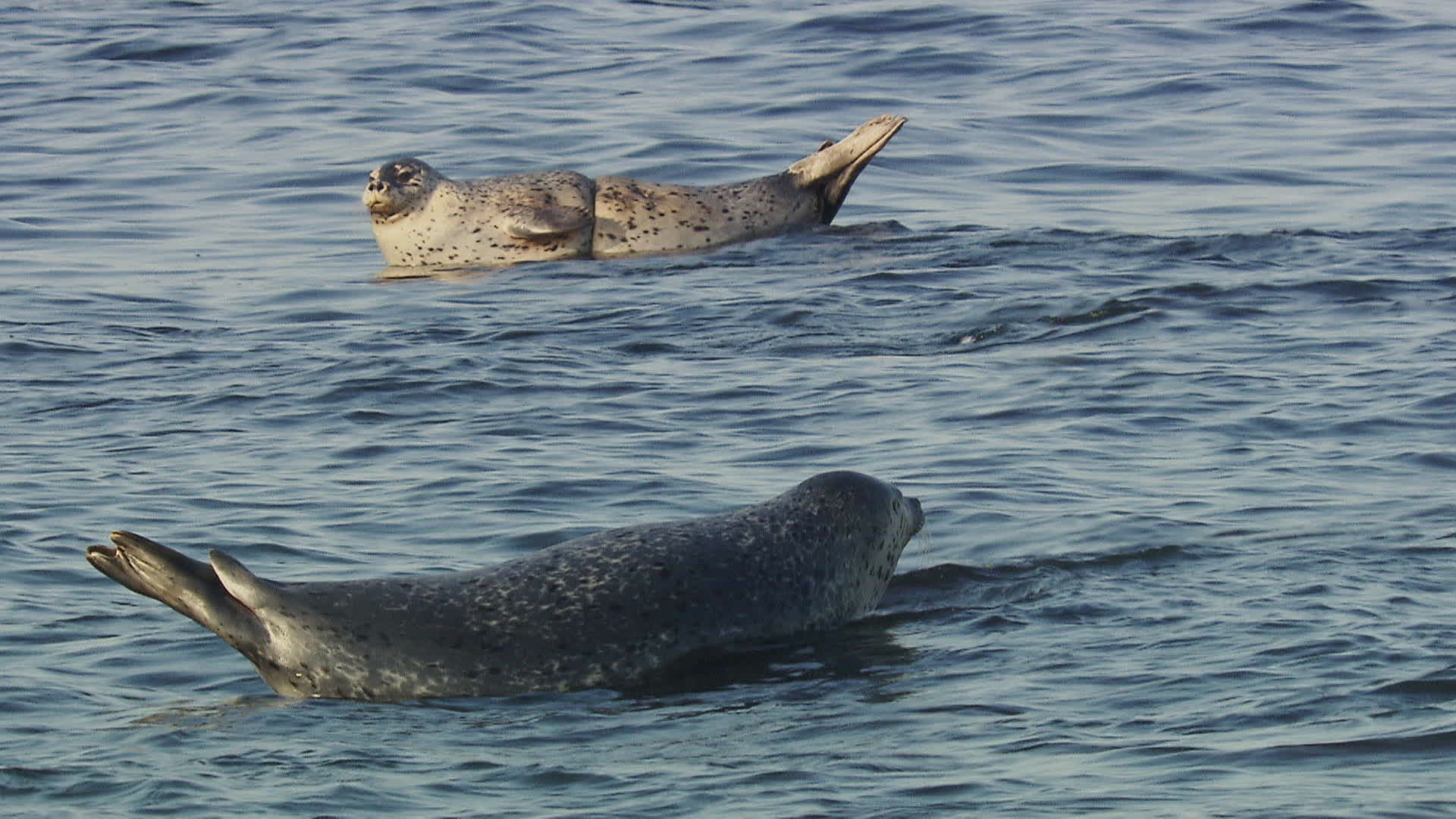 MS SHAKY Spotted seals (Phoca largha) resting on sea surface; Amur river basin / Russia