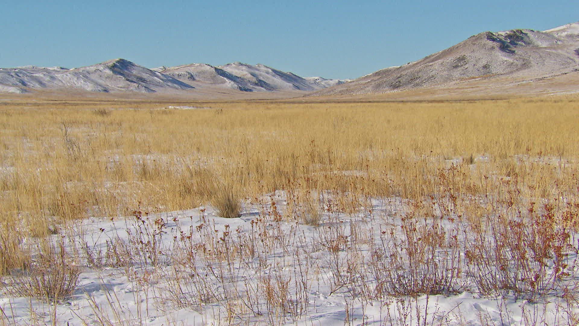 WS PAN Landscape of mountains under blue sky; Herlen river / Mongolia