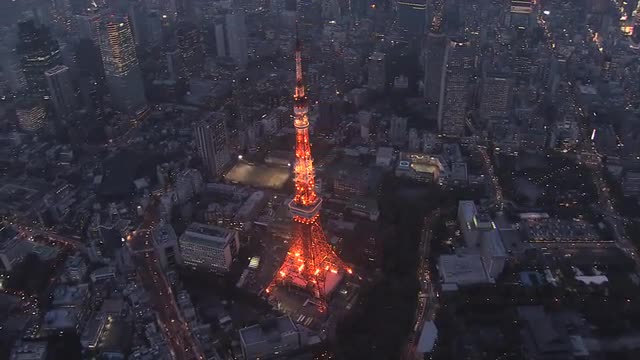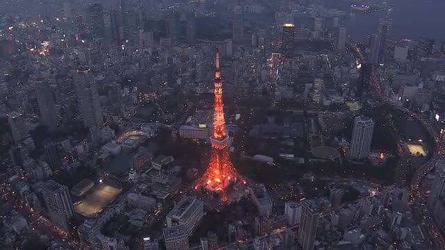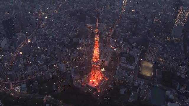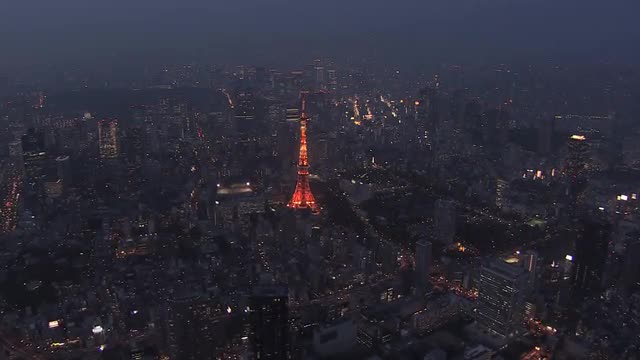 Aerial Metropolis Tokyo illuminated suburban Urban city transportation Japan