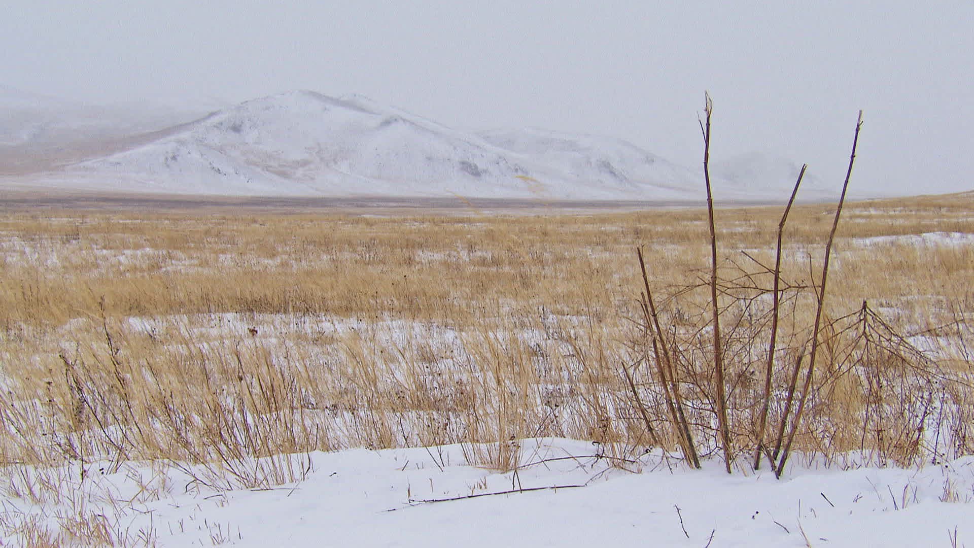 WS Landscape of steppe in winter; Herlen river / Mongolia