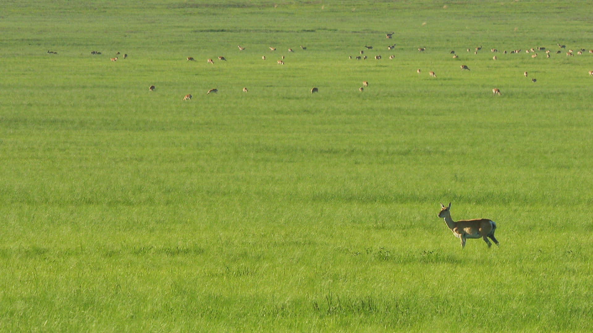 WS Herd of Mongolian gazelles (Procapra gutturosa) grazing in field / Mongolia