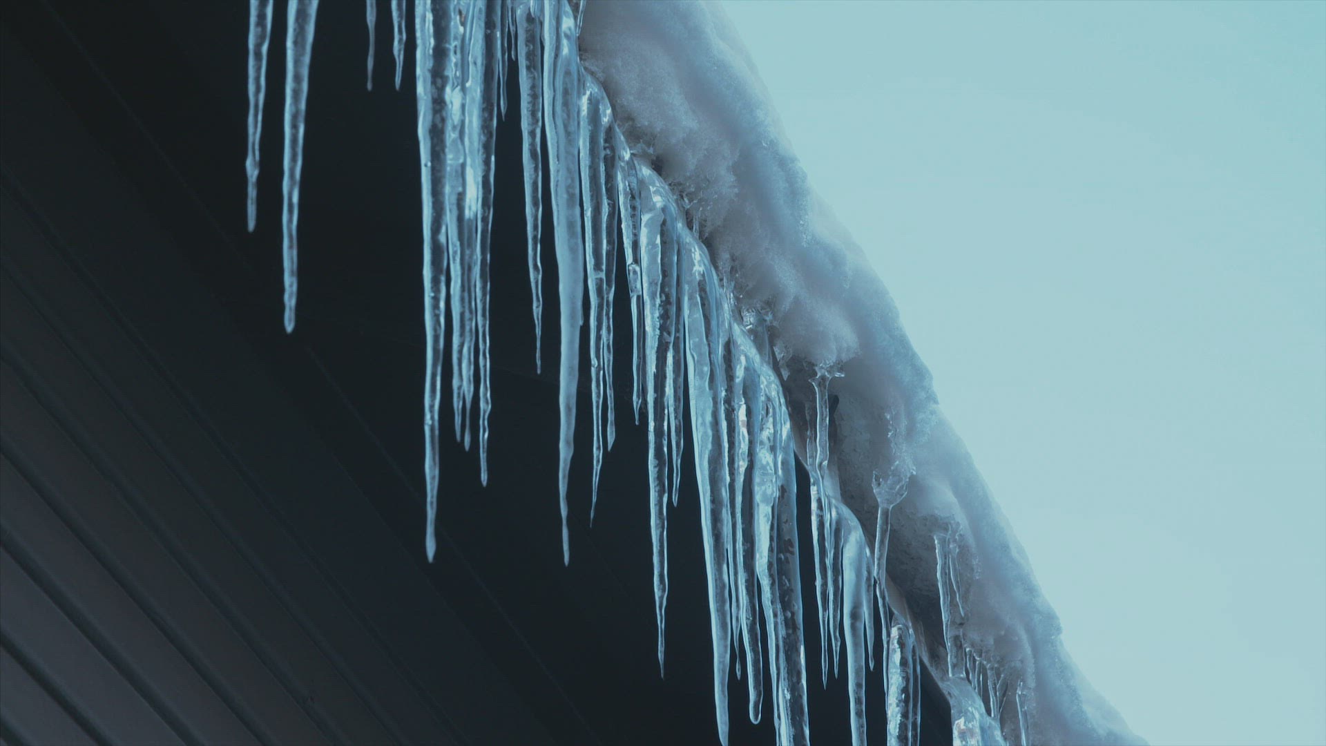 CU Icicles at beach in Sikhote Alin woodlands / Russia