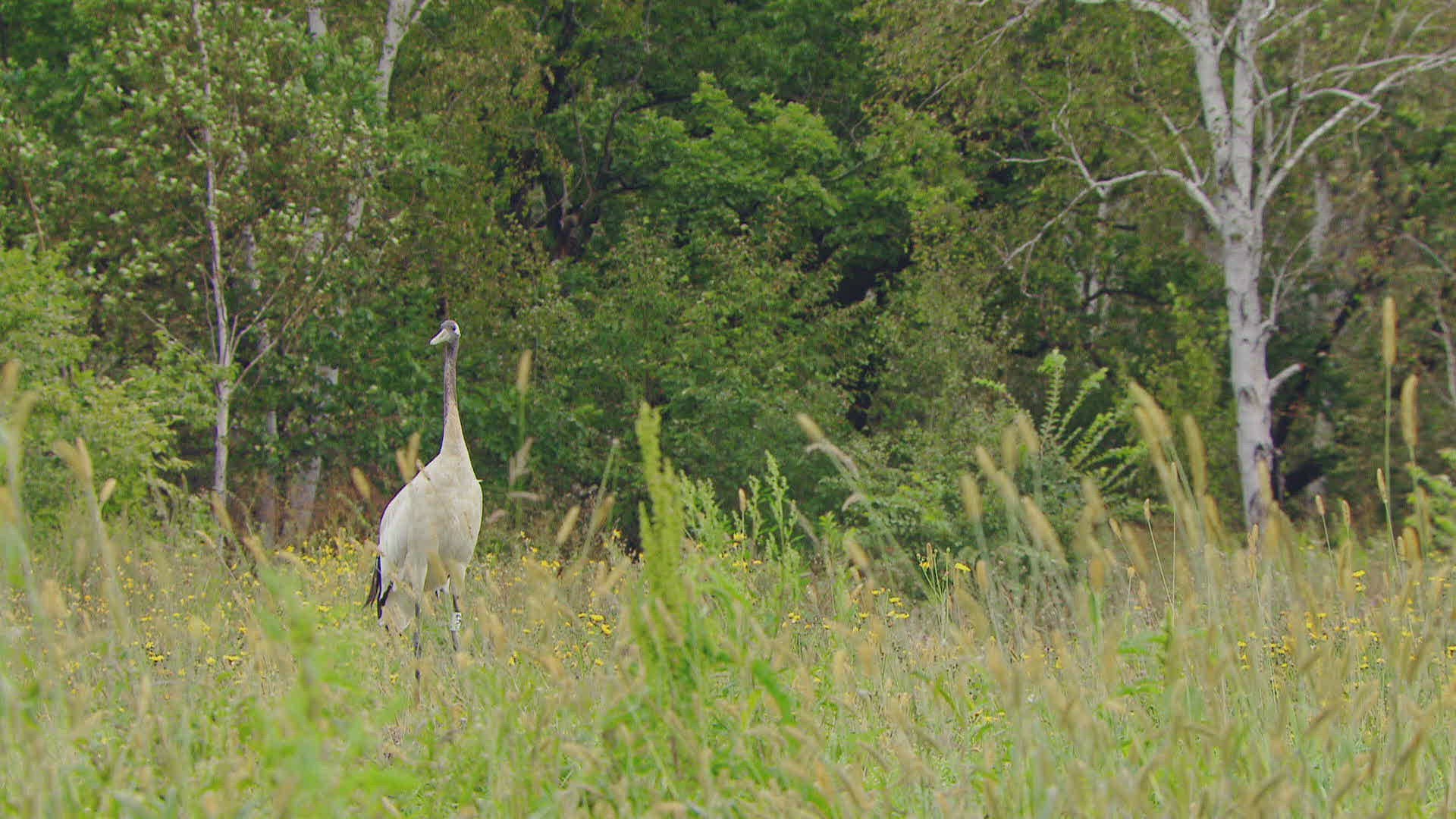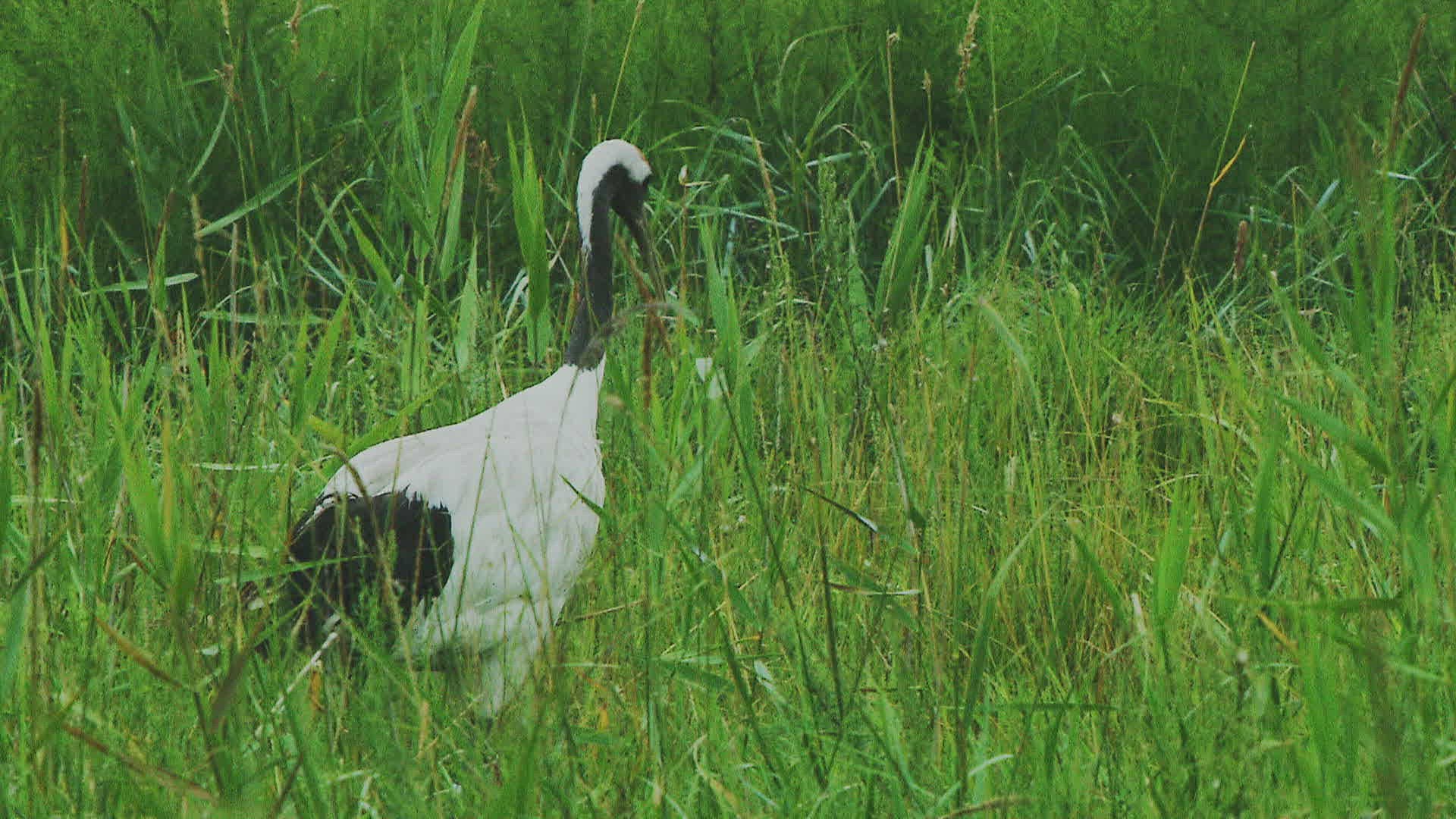 MS TD Manchurian crane (Grus japonensis) walking in grass / Russia