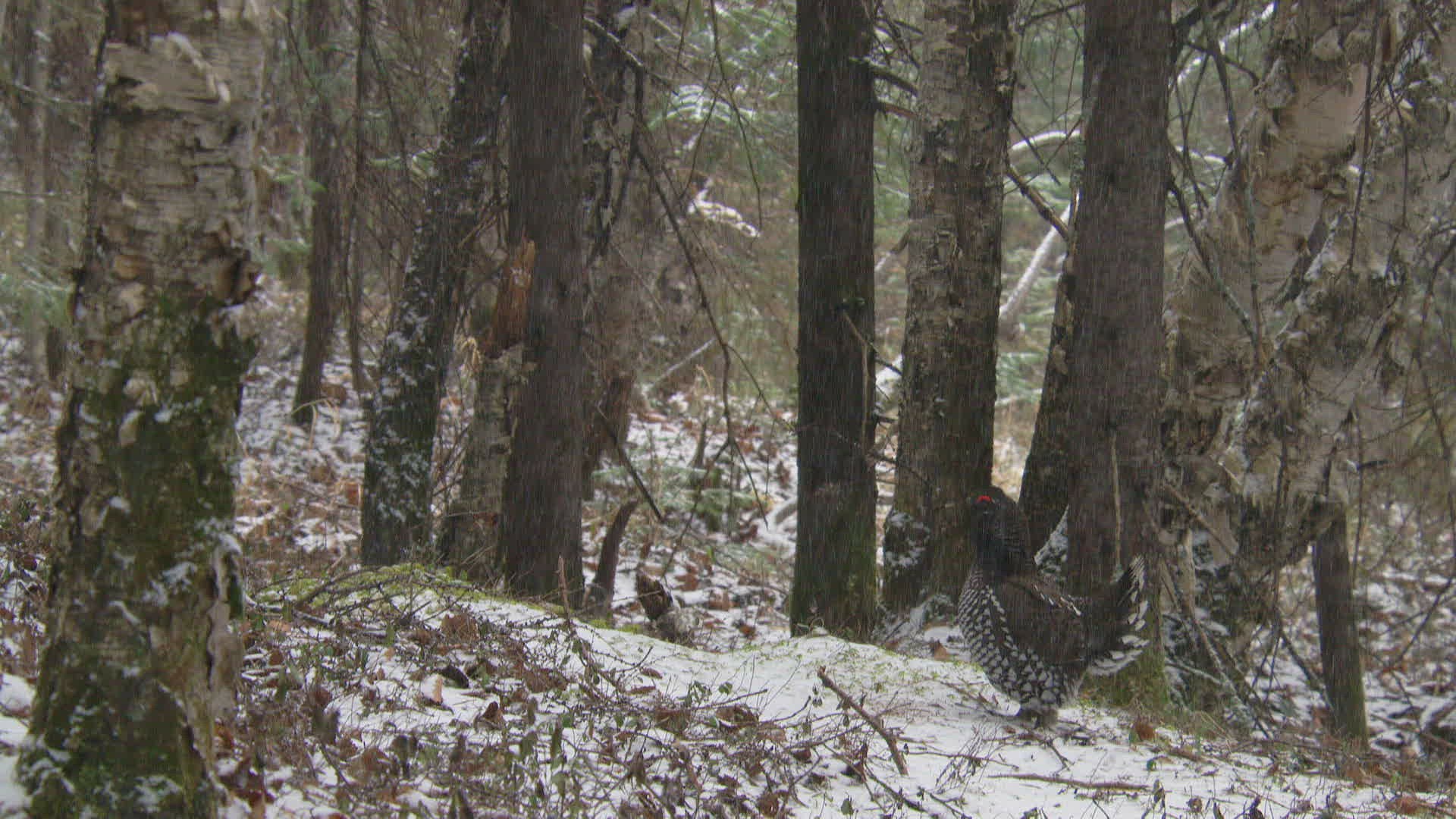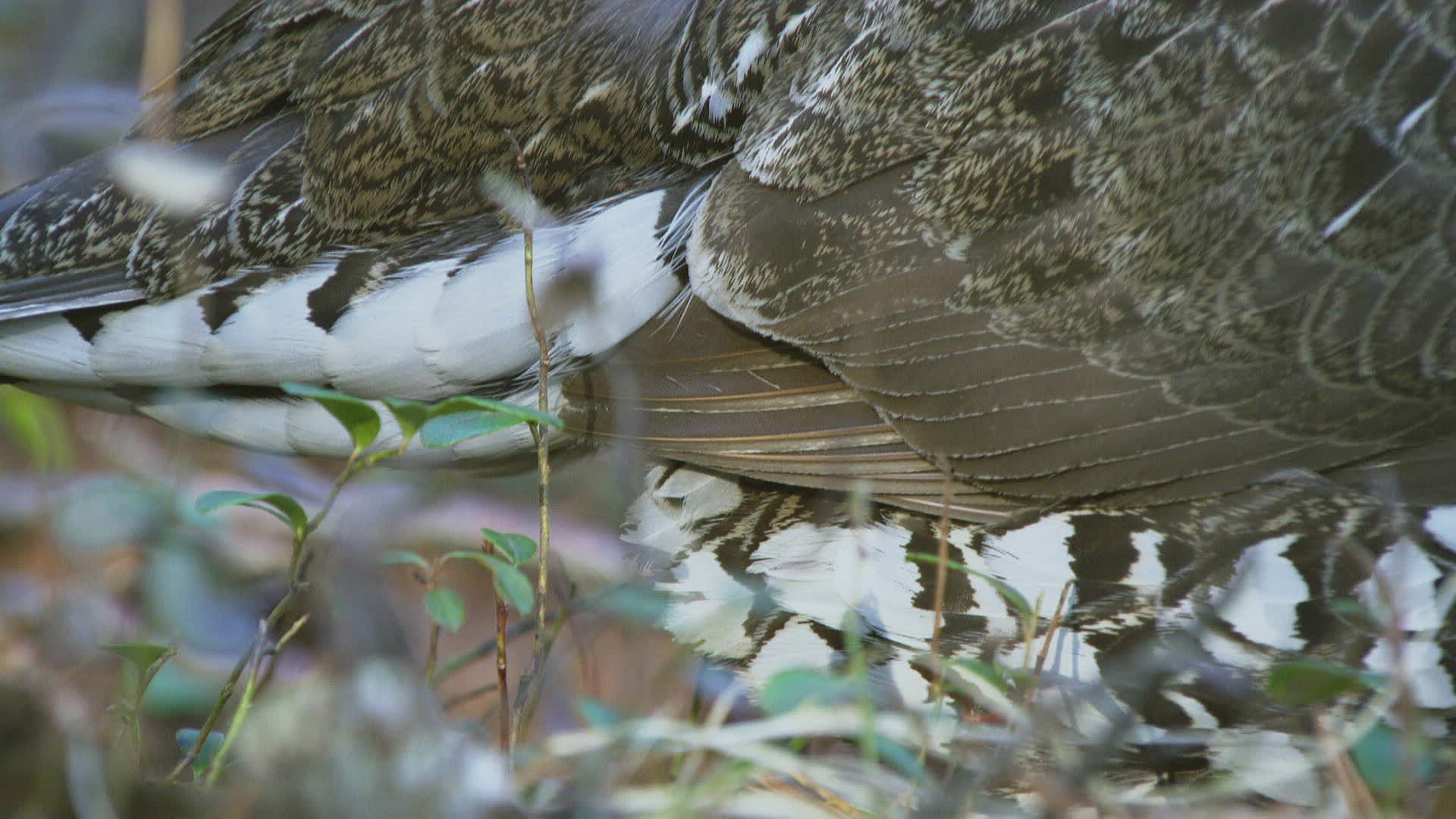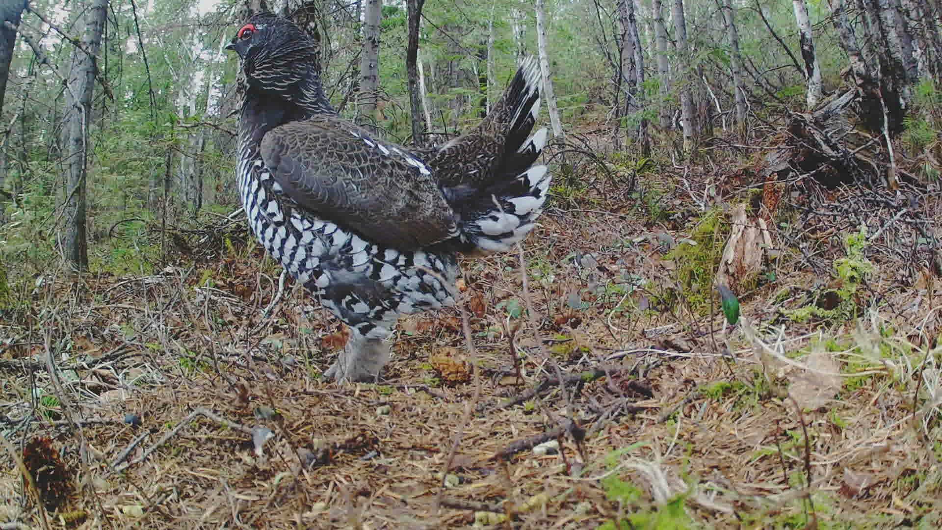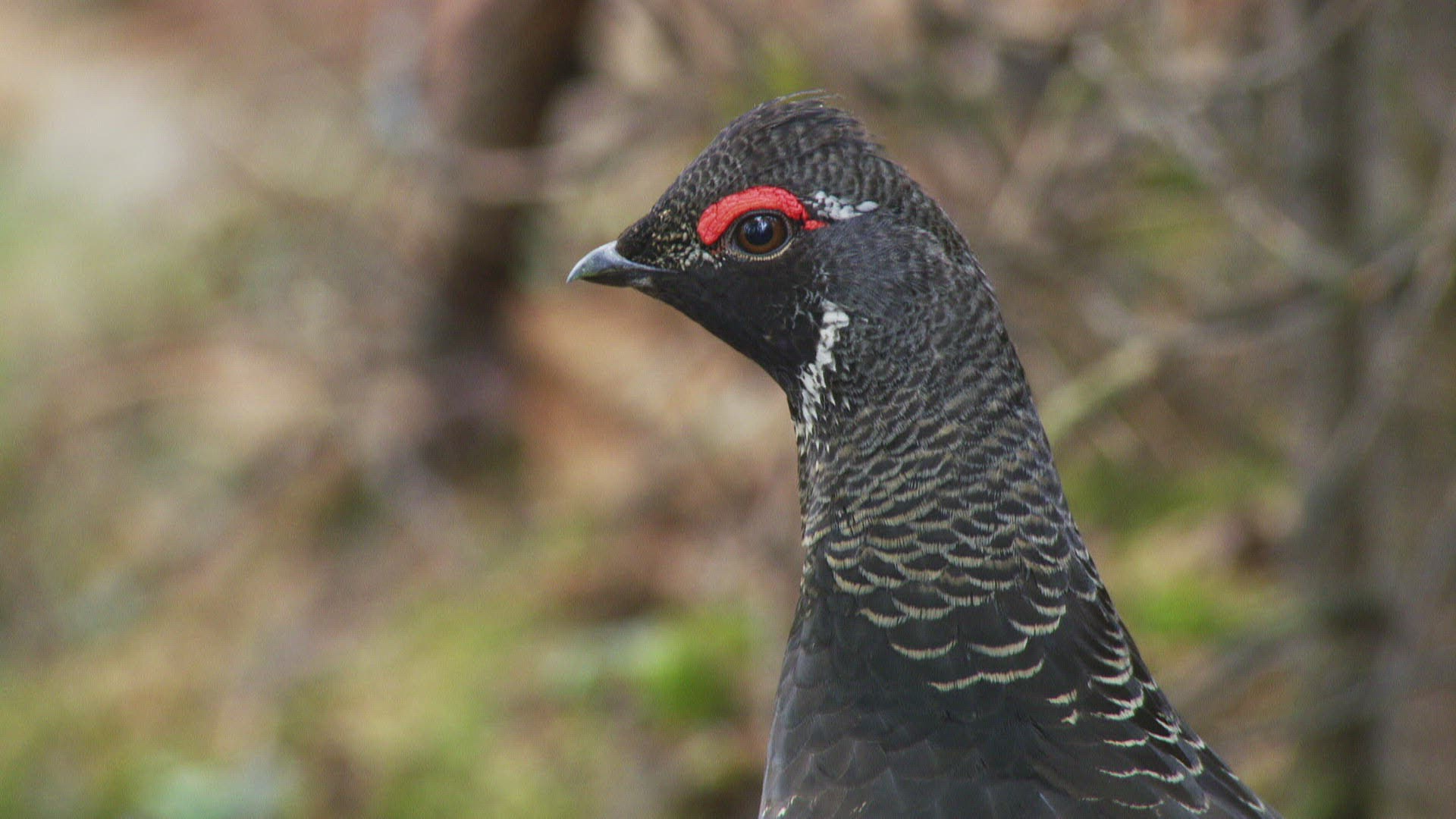 WS SELECTIVE FOCUS Siberian grouse (Falcipennis falcipennis) sitting; Amur river basin / Russia