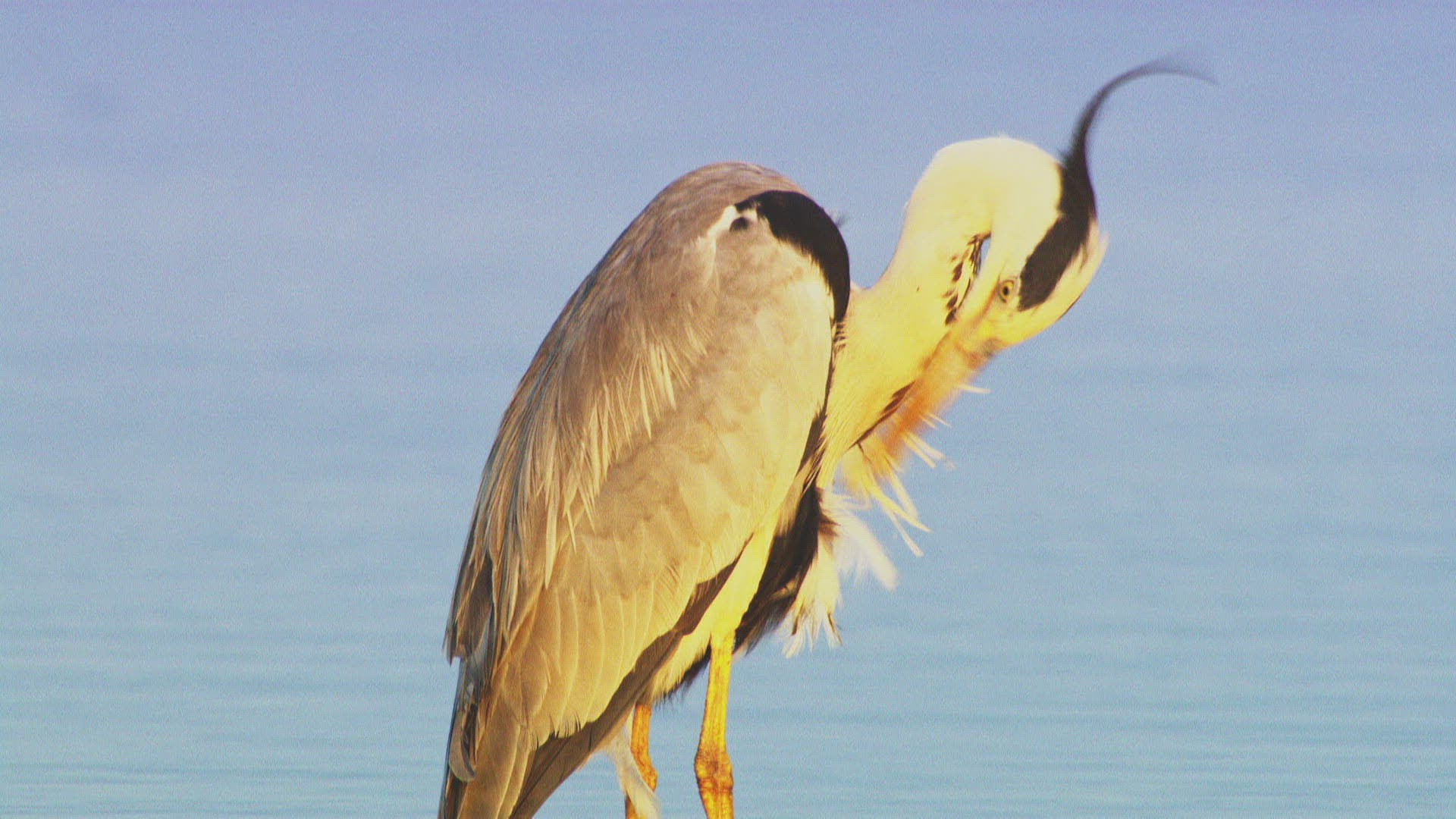MS PAN Grey heron (Ardea cinerea) flying in sky / Russia