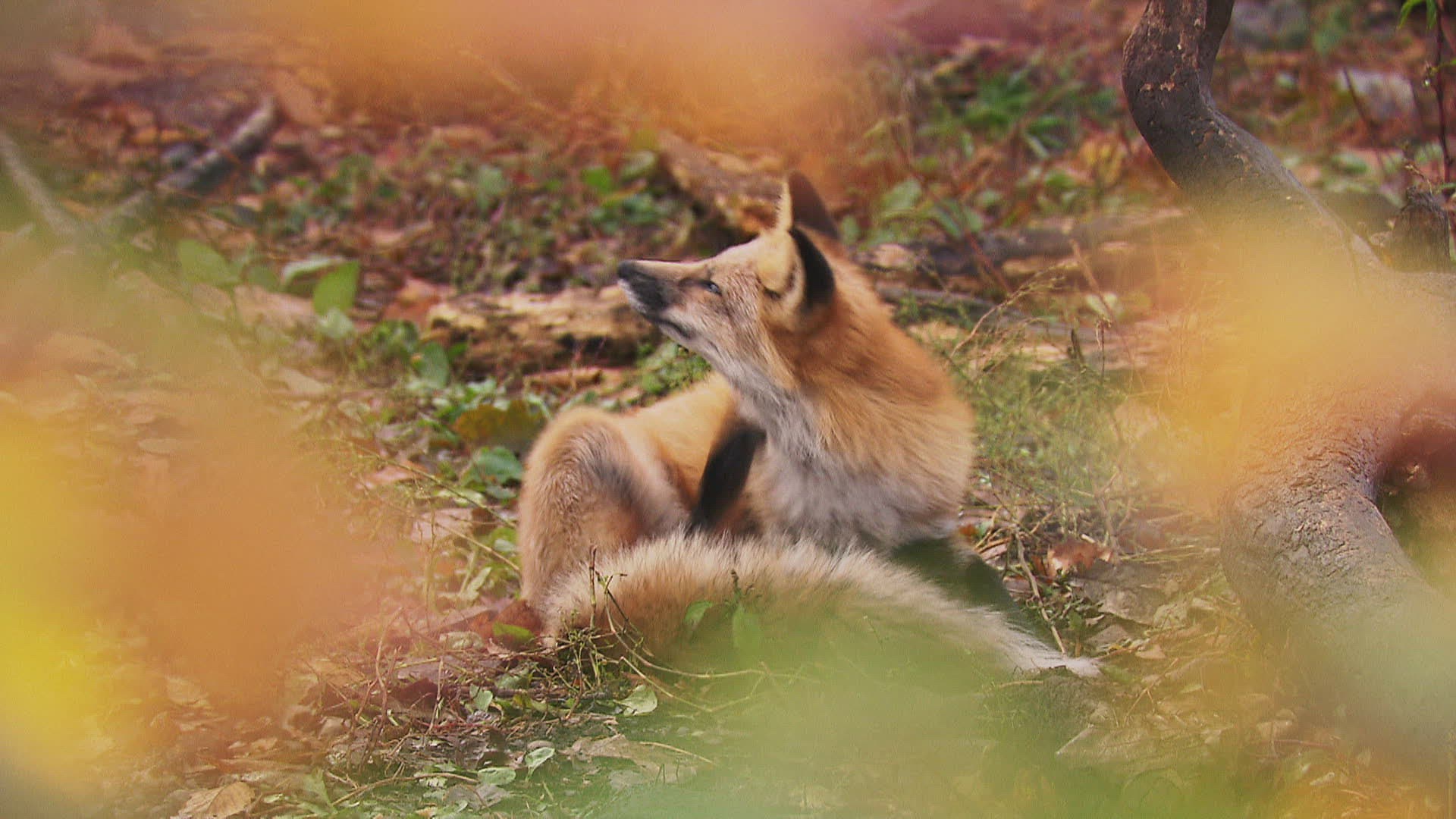 MA PAN SELECTIVE FOCUS Young Wolf (Canis lupus) scratching itself / Mongolia