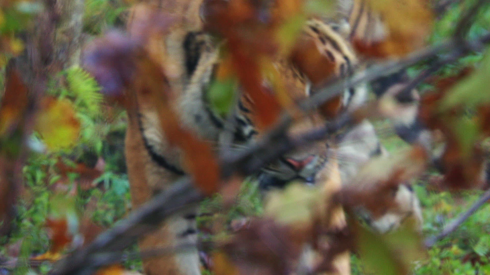 MS PAN ZO SELECTIVE FOCUS Tigers (Panthera tigris altaica) in forest / China