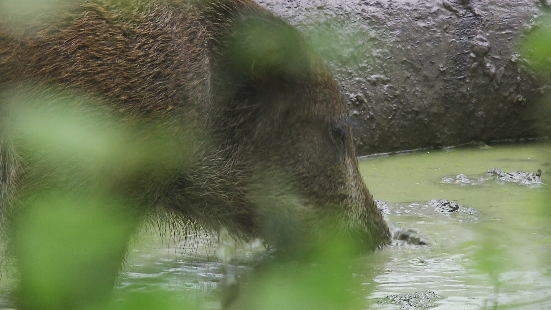 MS Wild boar (Sus scrofa) standing in riverr / Russia