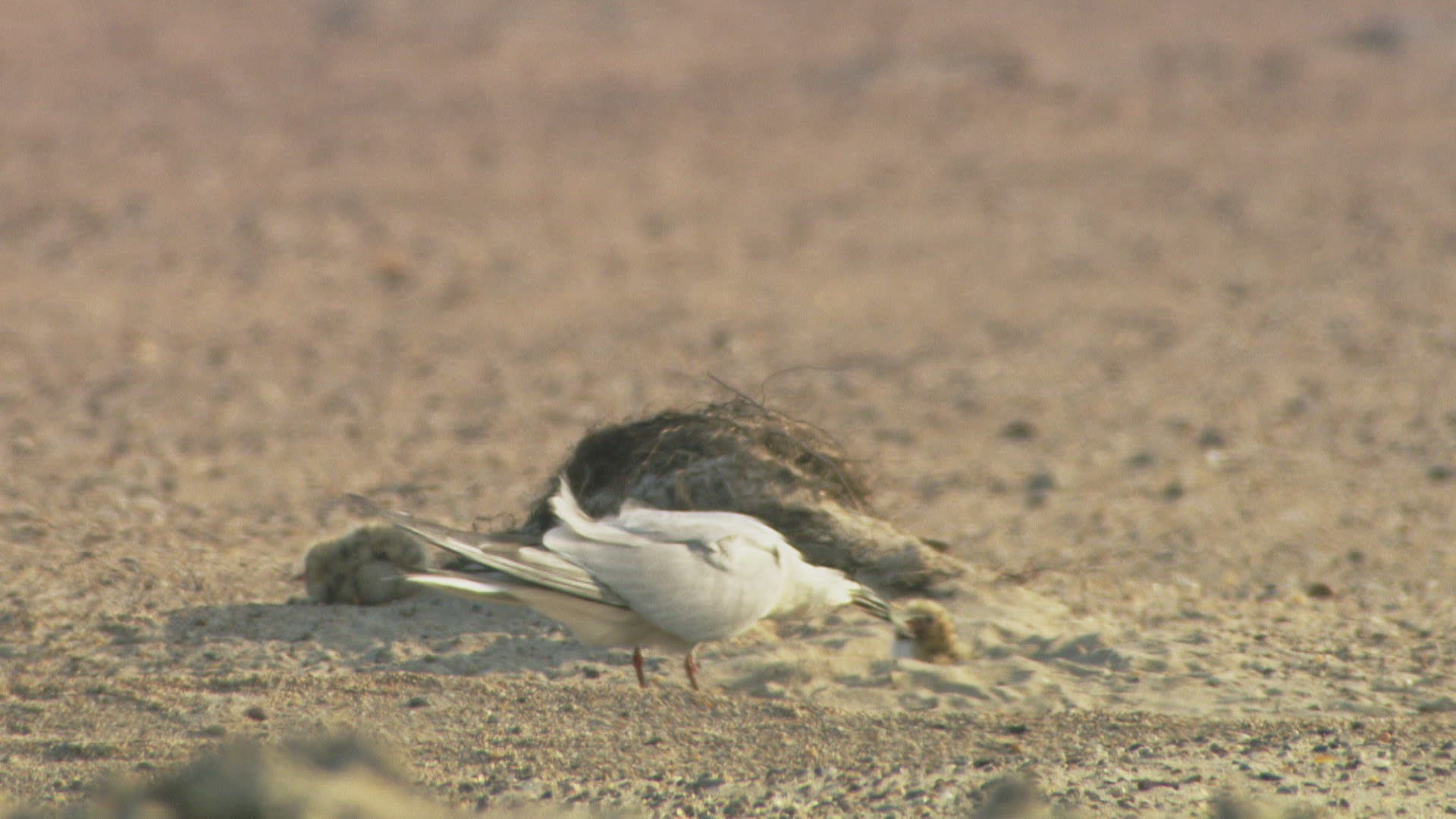 MS Two Sand martins (Riparia riparia) nestlings in nest / Mongolia