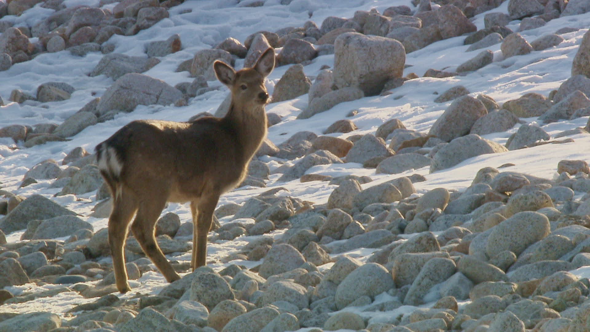 WS Sikha deer (Cervus nippon) walking on rocks; Sikhote Alin / Russia