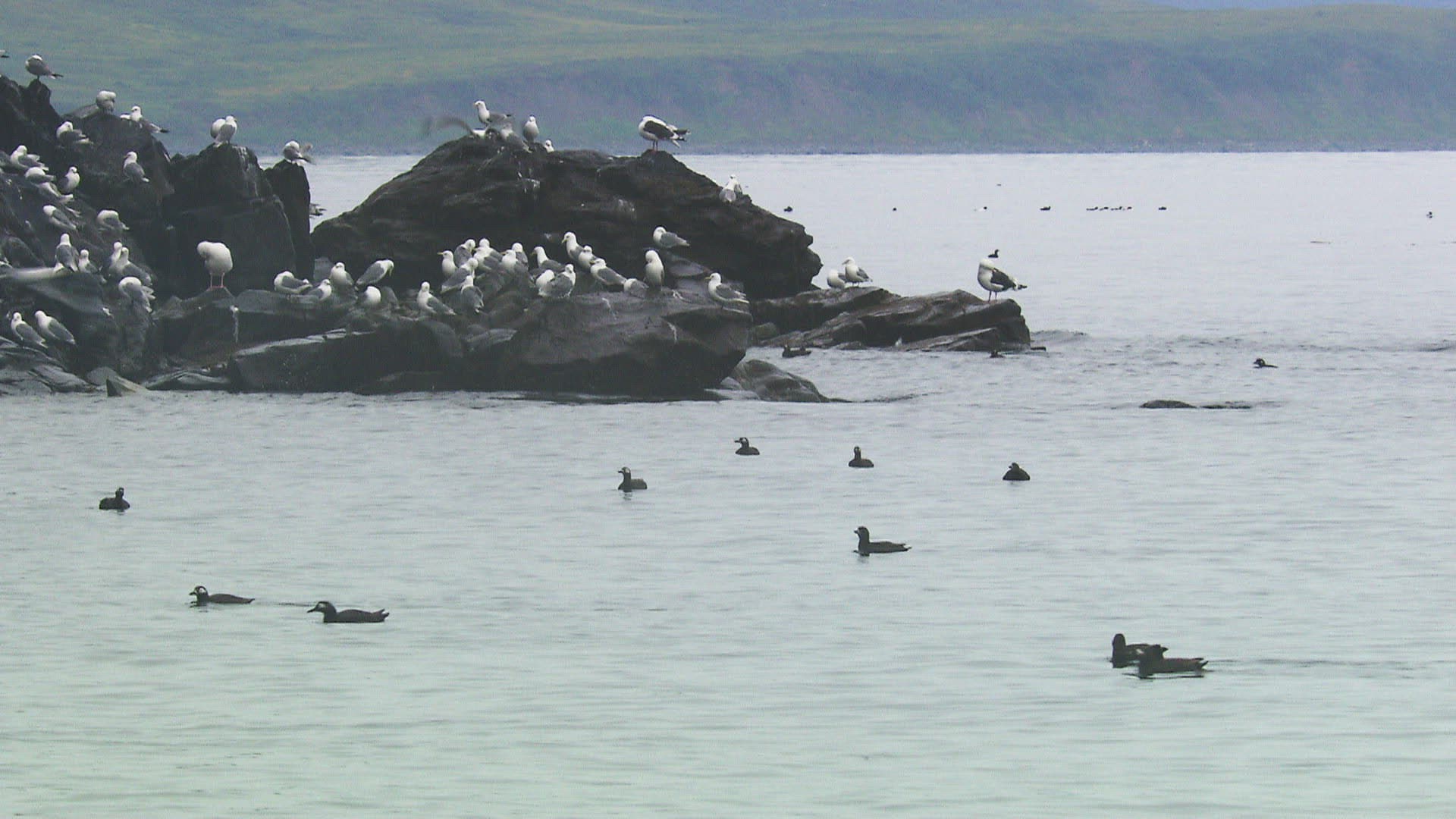 WS Two Spectacled guillemots (Cepphus carbo) fighting / Russia