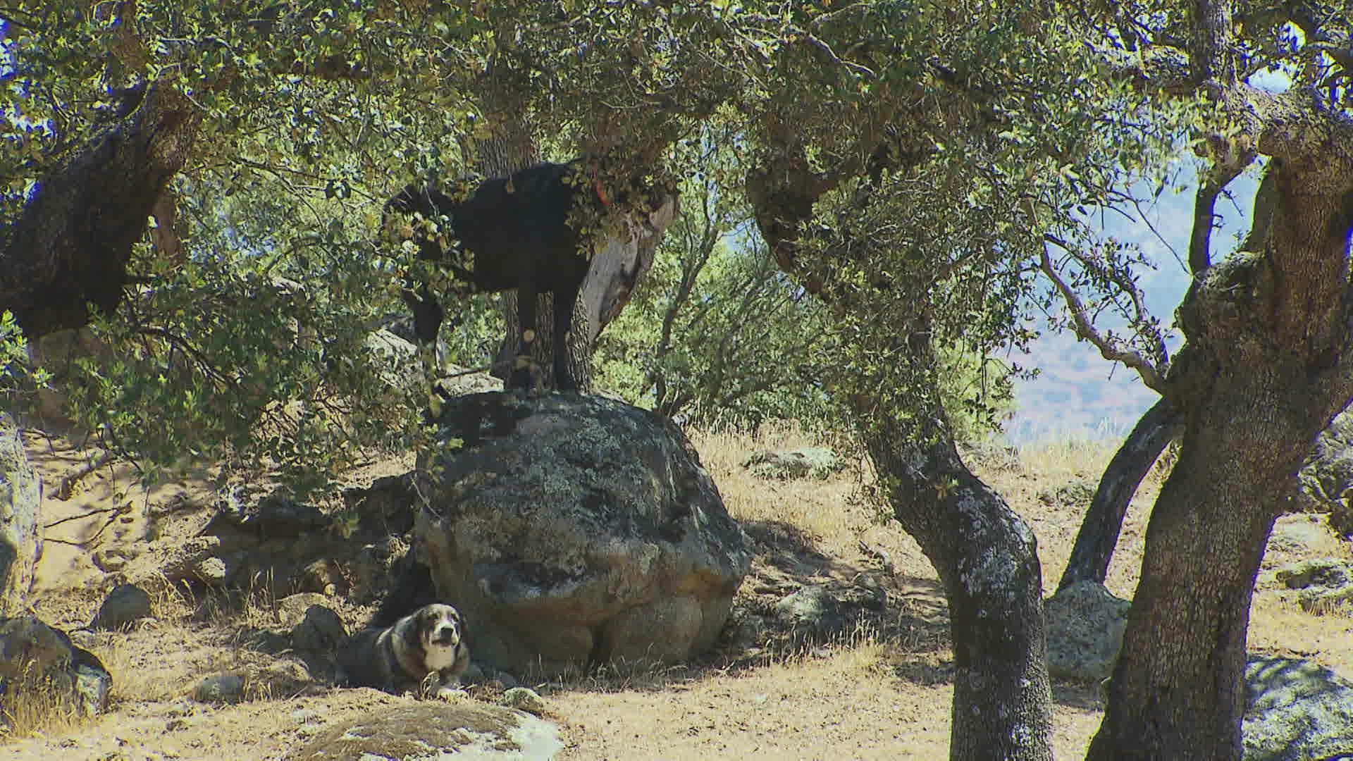 MS White dogs (Canis lupus familiaris) running and barking in field / China